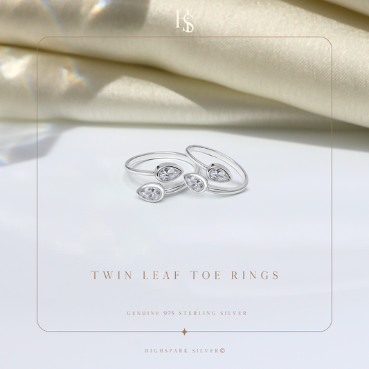 Twin Leaf Embrace Toe Ring - Adjustable in 925 Sterling Silver - 2 Piece