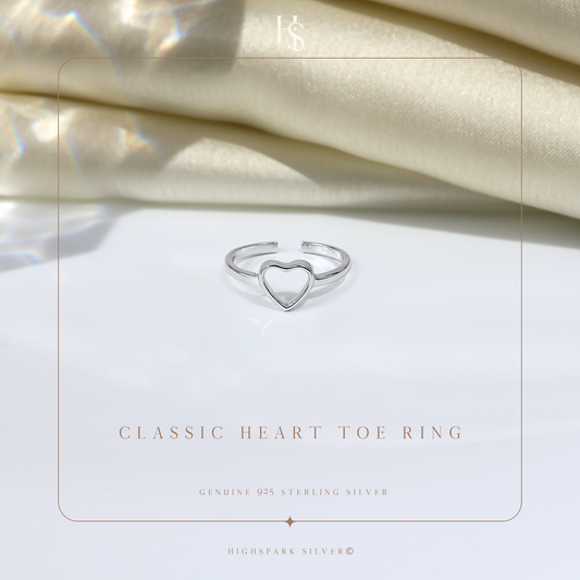 Classis Heart Toe Rings - Adjustable in 925 Sterling Silver - 1 Piece