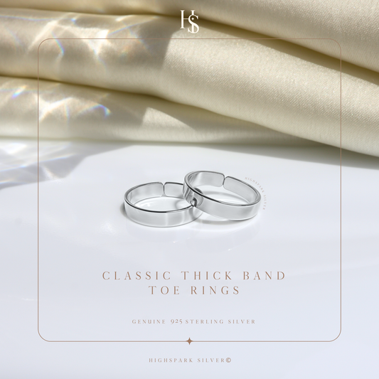 Classic Thick Band Toe Rings - Band Rings - 925 Sterling Silver - 2 Pieces