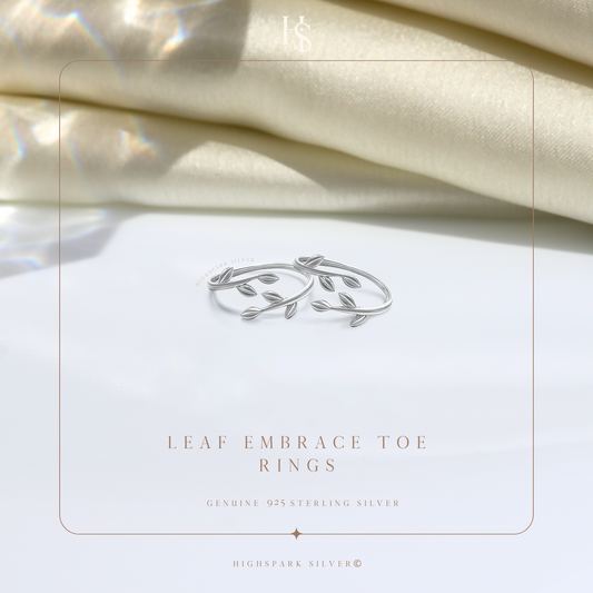Leaf Embrace Toe Rings - Adjustable in 925 Sterling Silver - 2 Piece