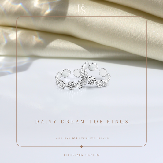 Daisy Dream Toe Rings - Adjustable in 925 Sterling Silver - 2 Piece