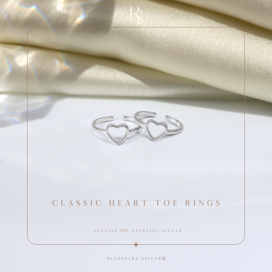 Classis Heart Toe Rings - Adjustable in 925 Sterling Silver - 2 Piece