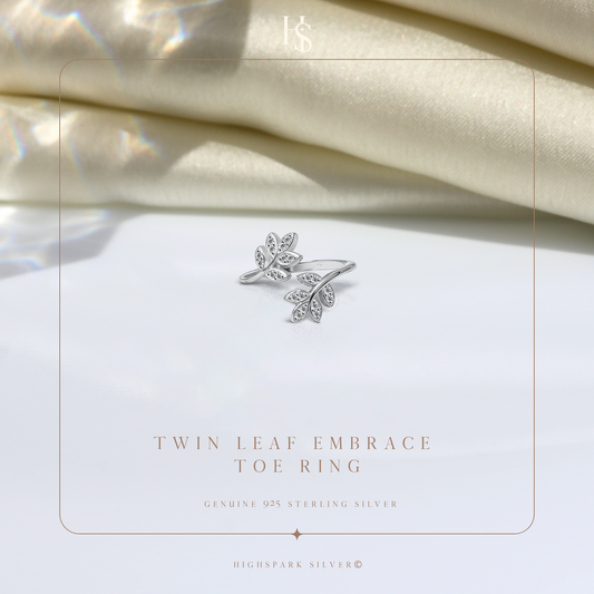 Twin Leaf Embrace Toe Ring - Adjustable in 925 Sterling Silver - 2 Piece