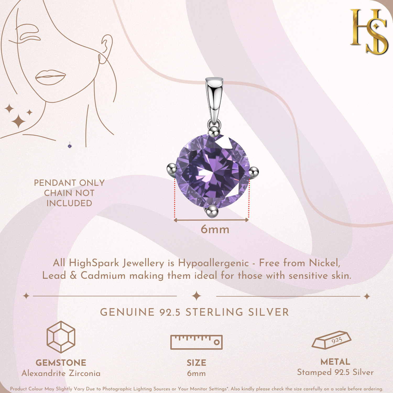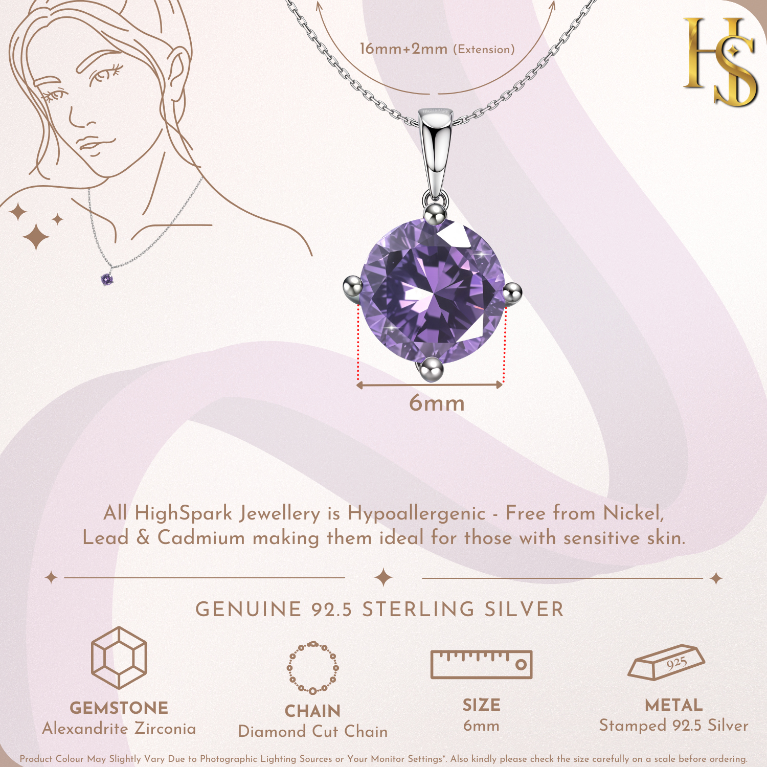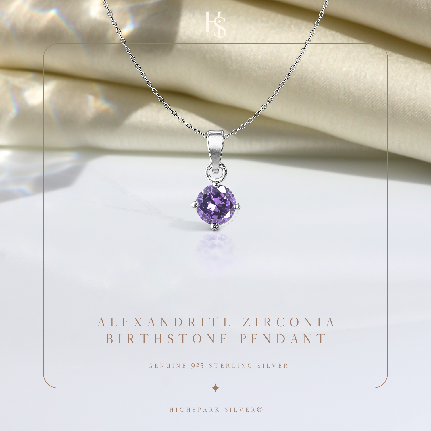 Alexandrite Zirconia Birthstone Pendant With Chain in 925 Sterling Silver For Women