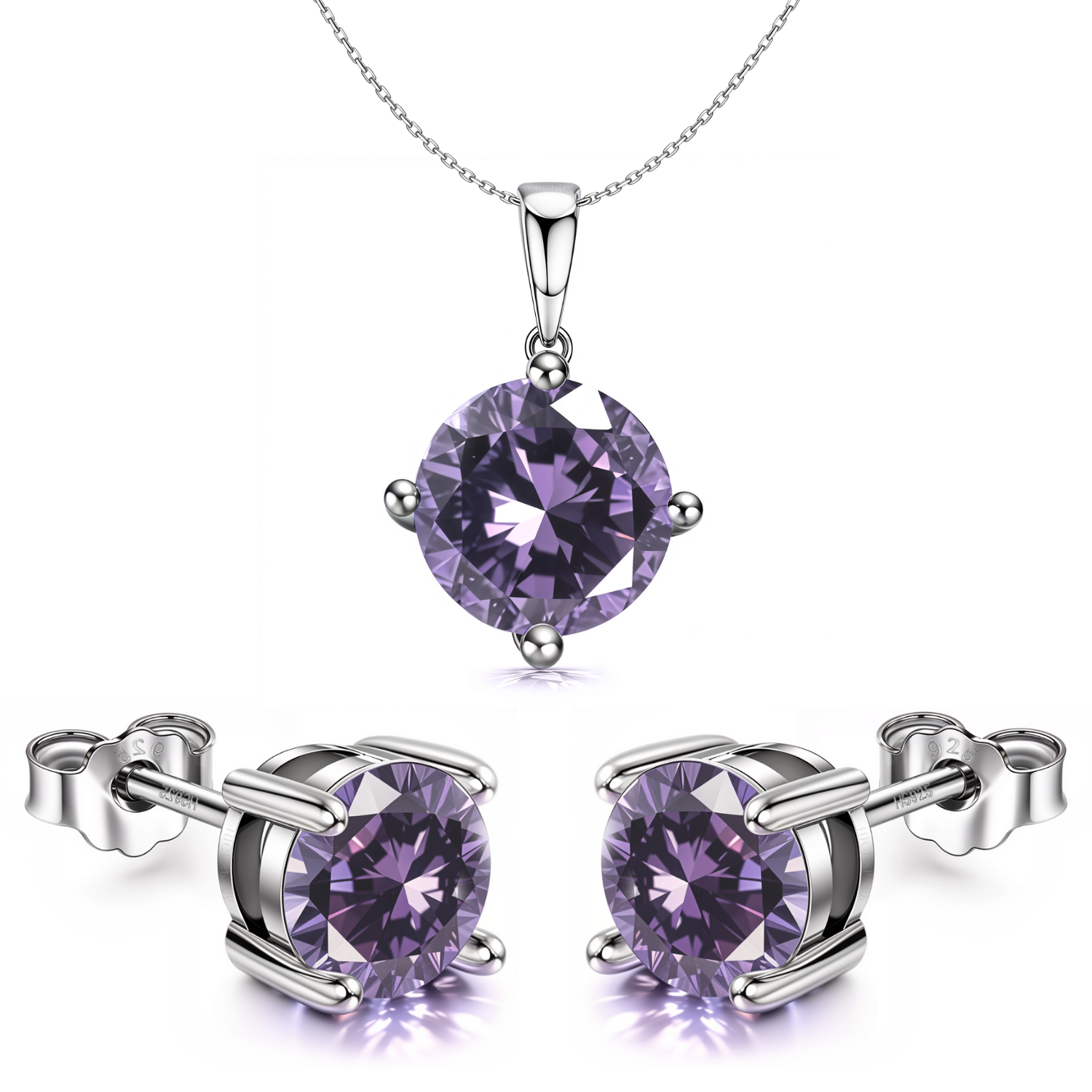 Alexandrite Zirconia Birthstone Stud Pendant-Set With Earrings