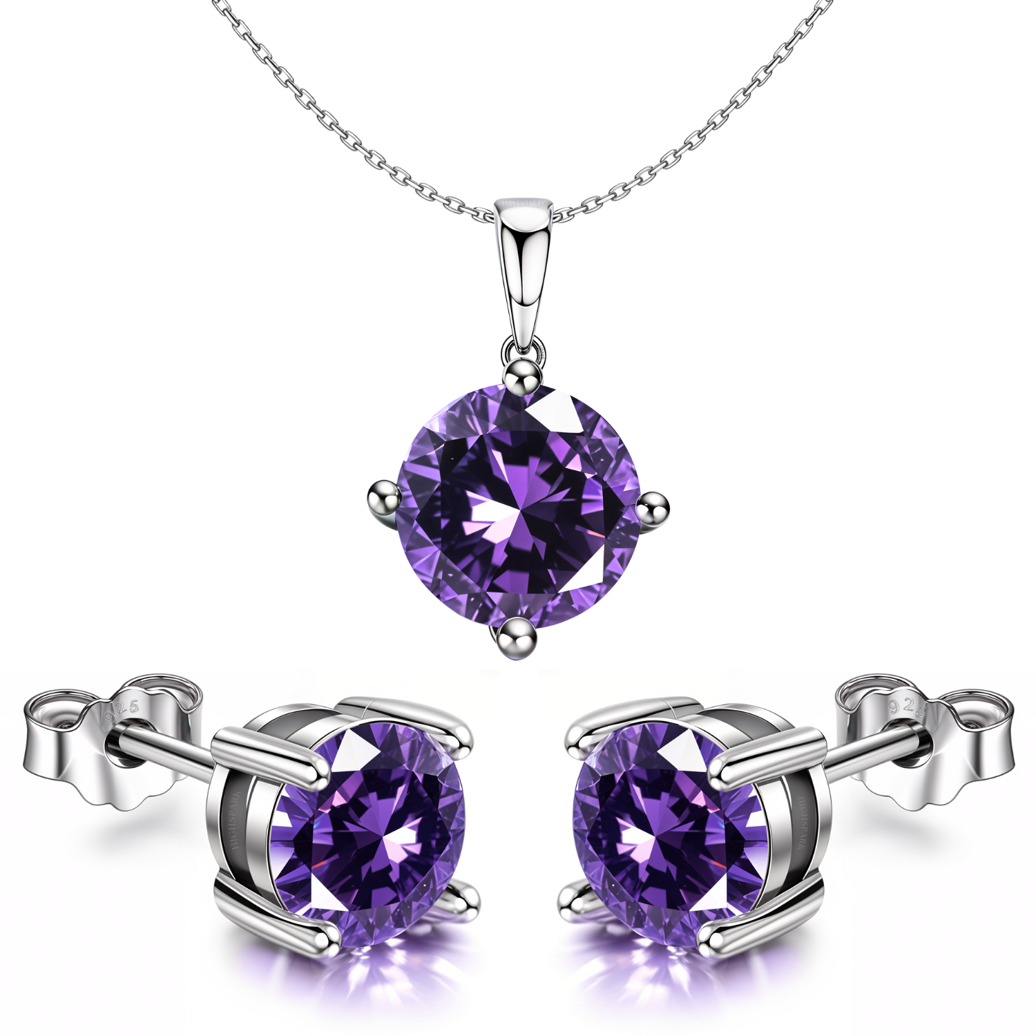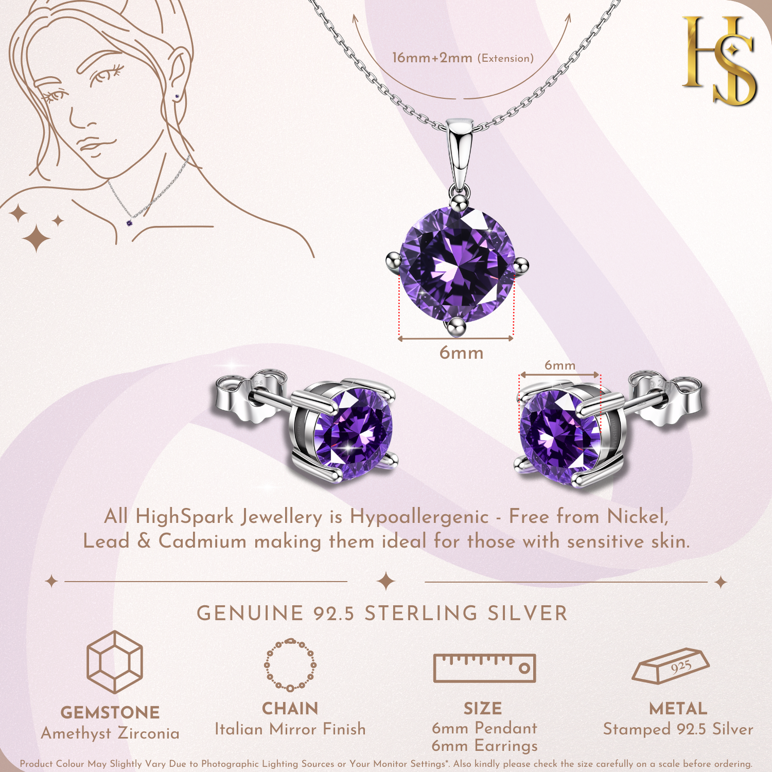 Amethyst Zirconia Birthstone Stud Pendant-Set With Earrings in 925 Sterling Silver For Women