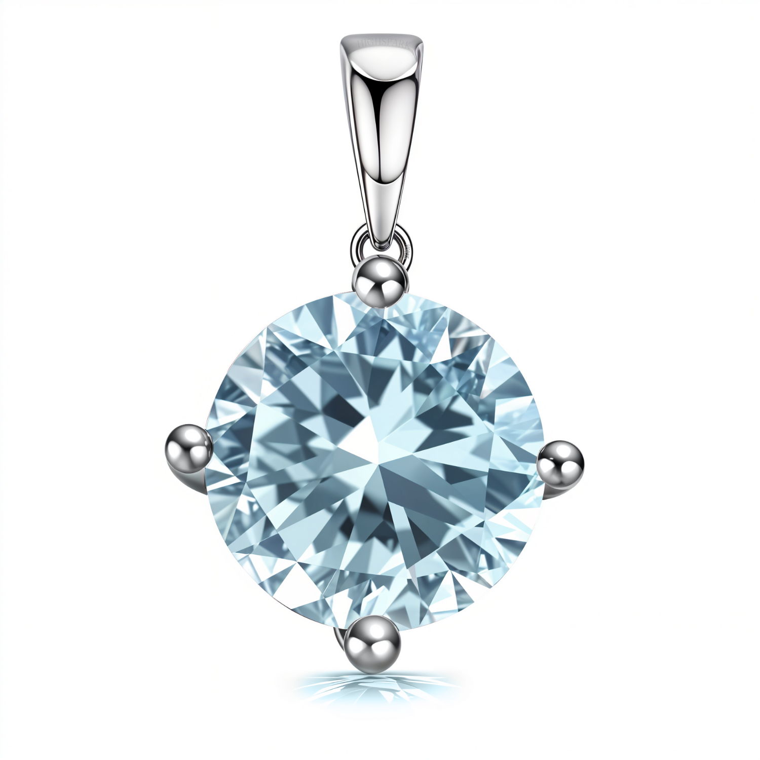 Aquamarine Zirconia Birthstone Pendant With Chain in 925 Sterling Silver For Women
