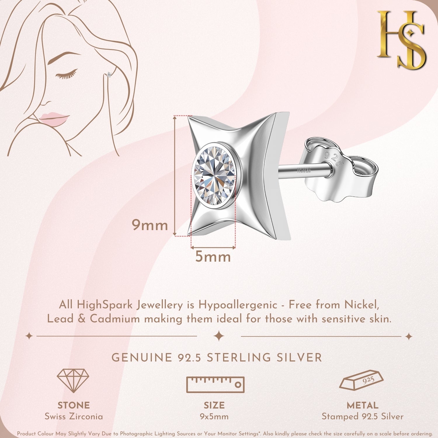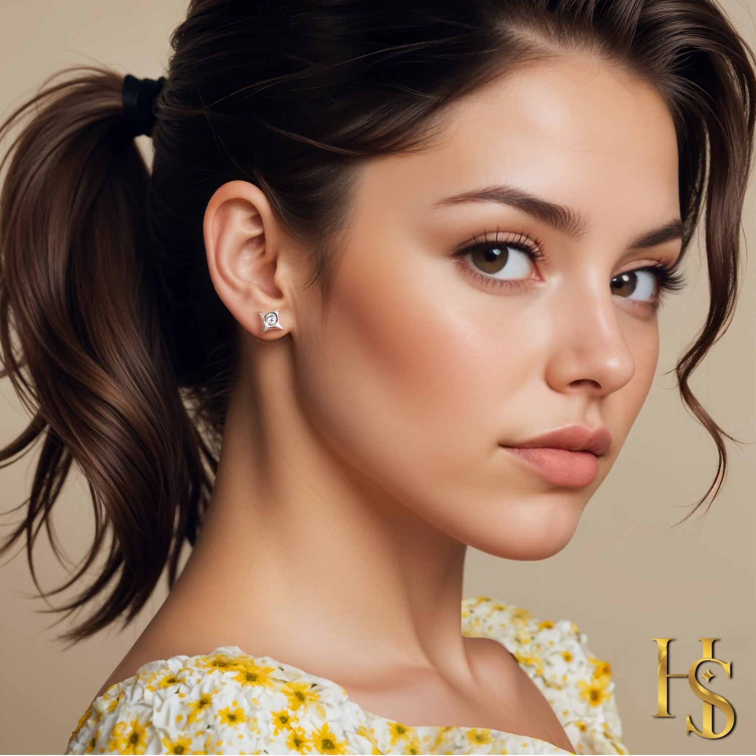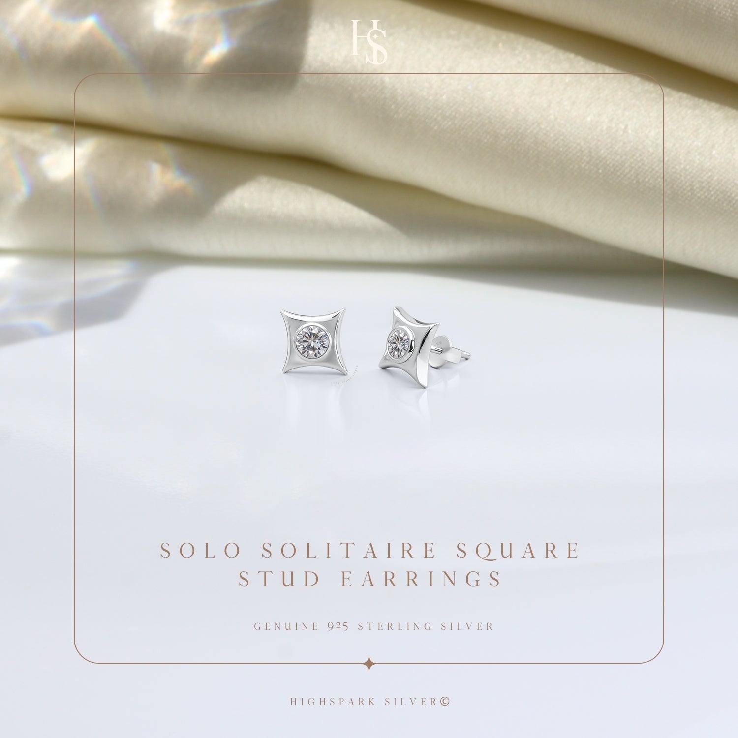Black Solitaire Casing Stud Earrings in 925 Sterling Silver For Women