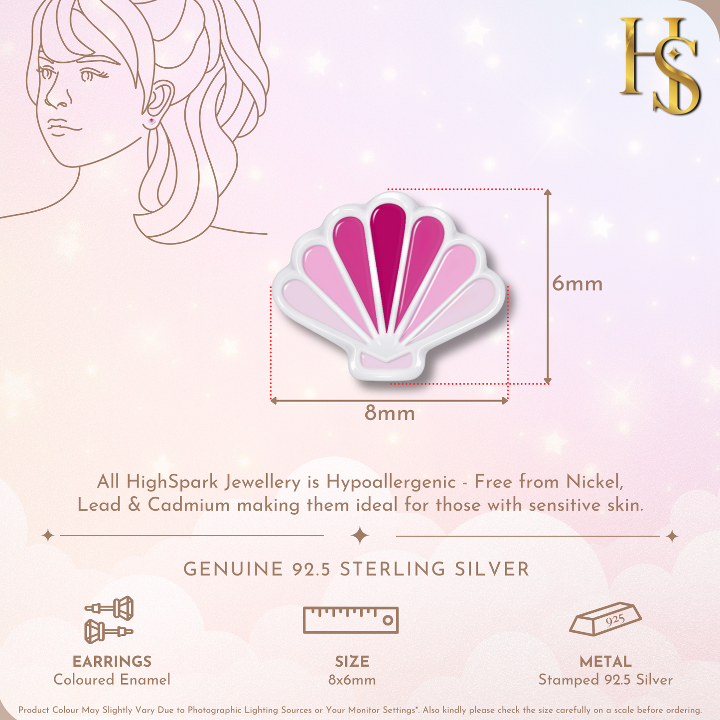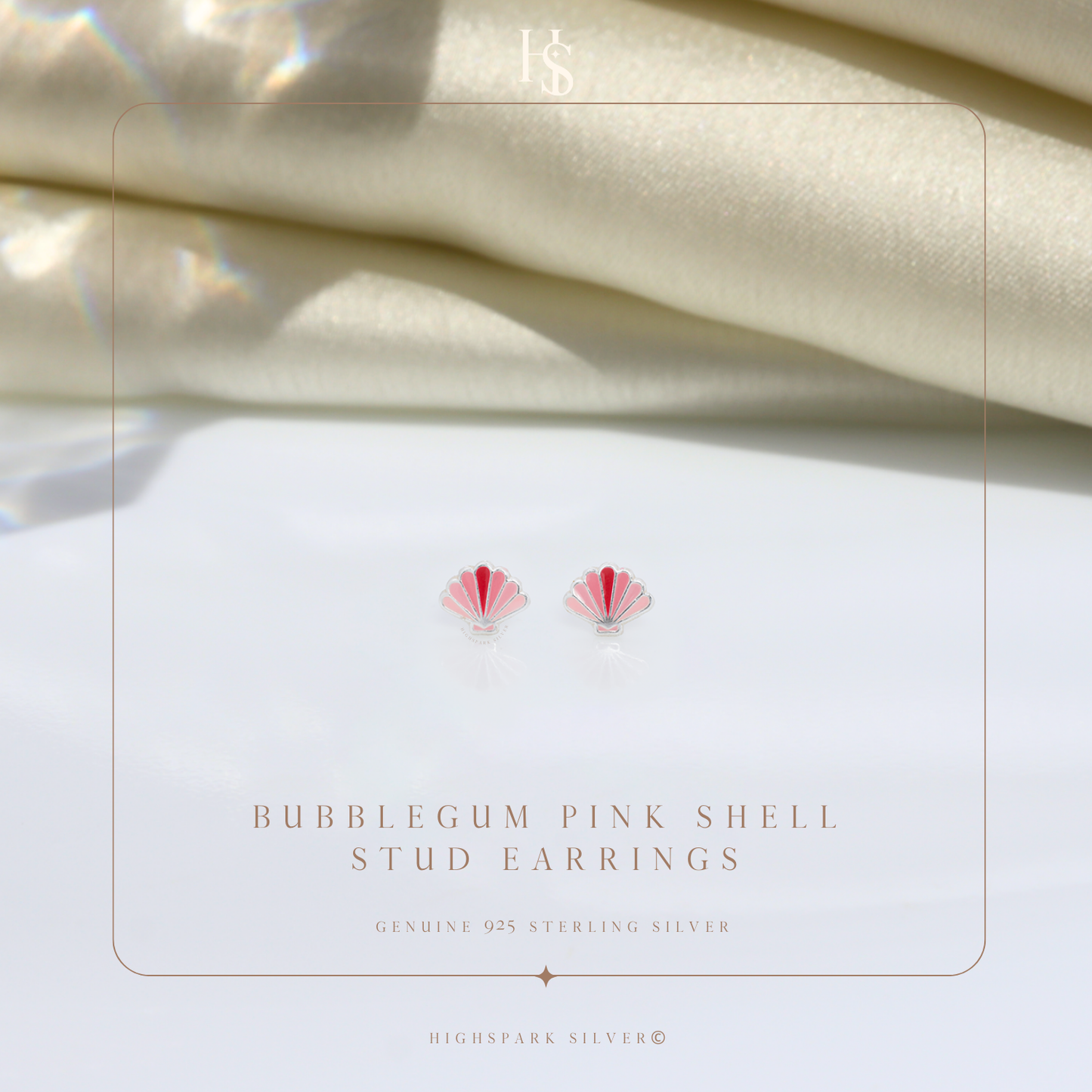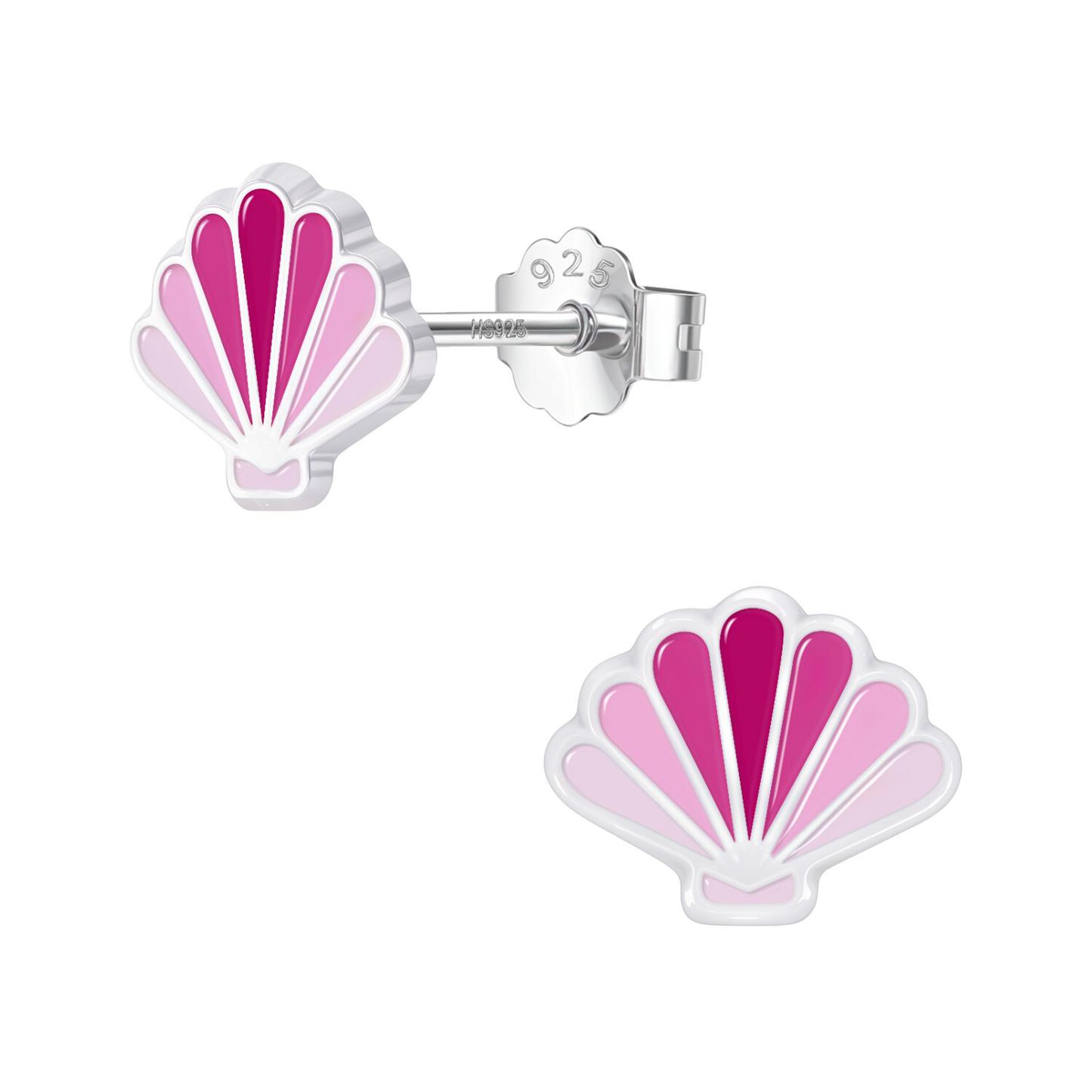 Bubblegum Pink Shell Cute Enamel Stud Earrings in 925 Sterling Silver