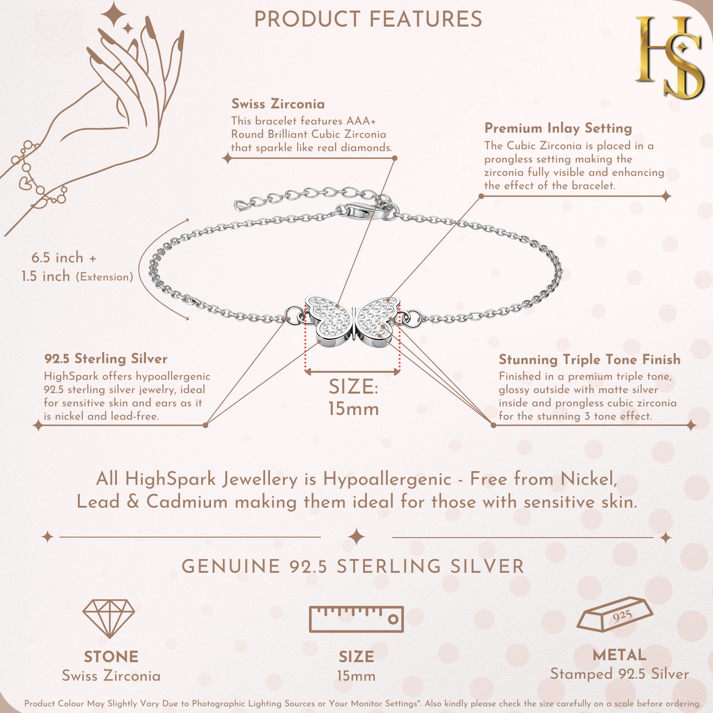 Butterfly Charm Bracelet in 925 Sterling Silver for Women With Diamond like Brilliance Zirconia