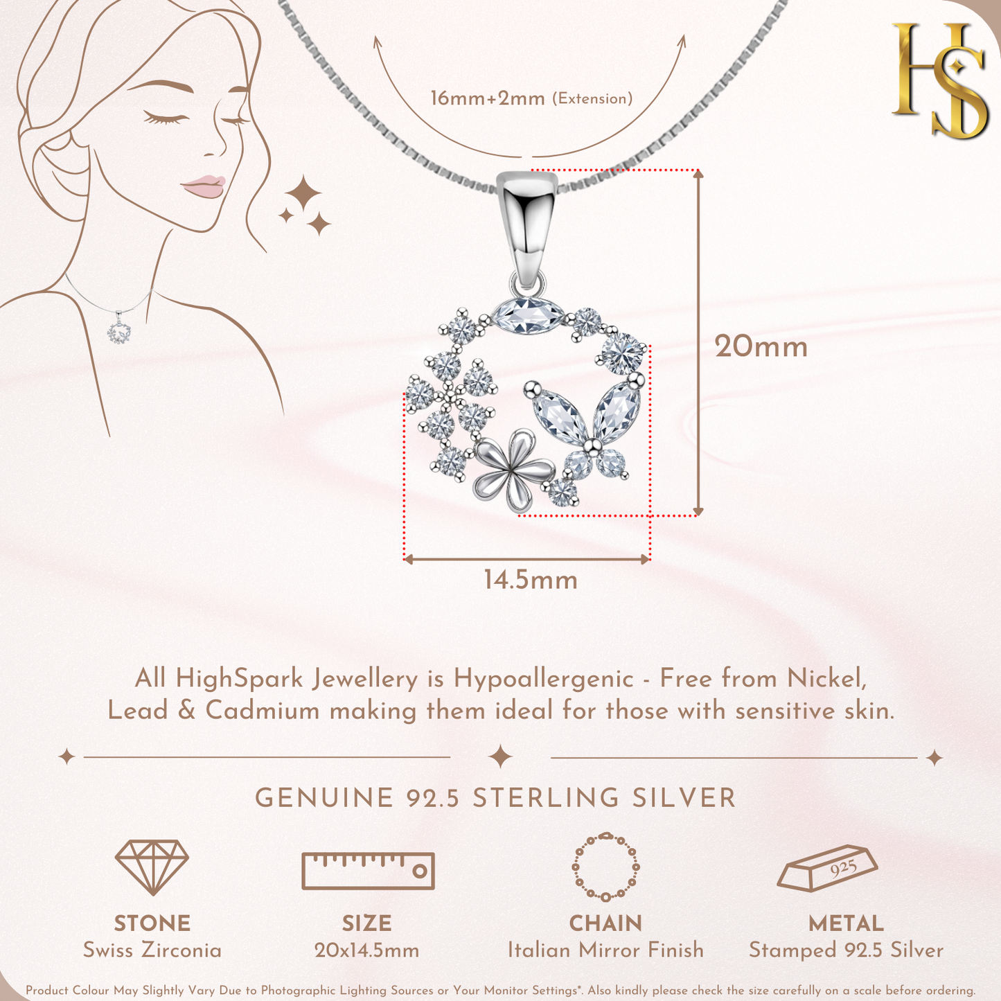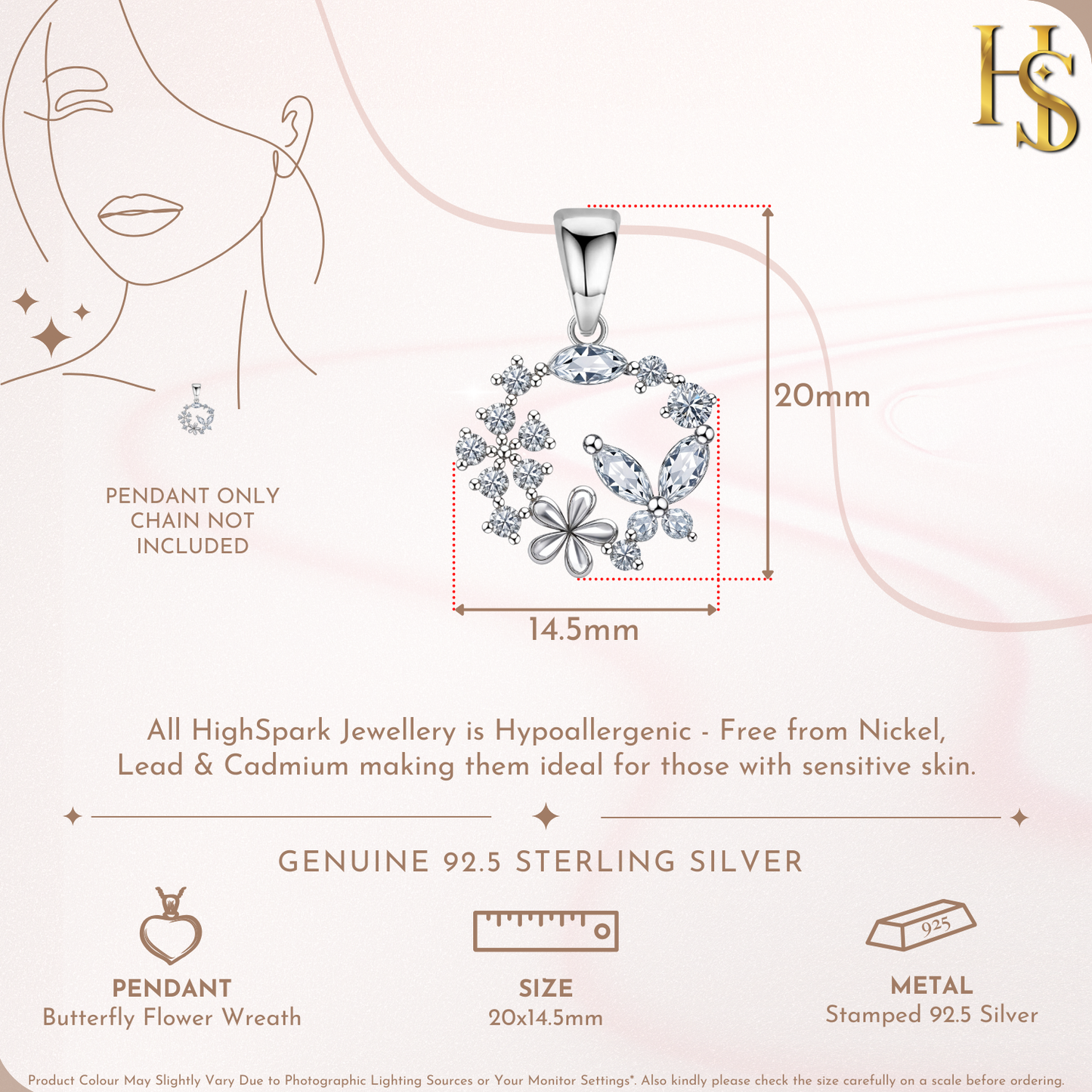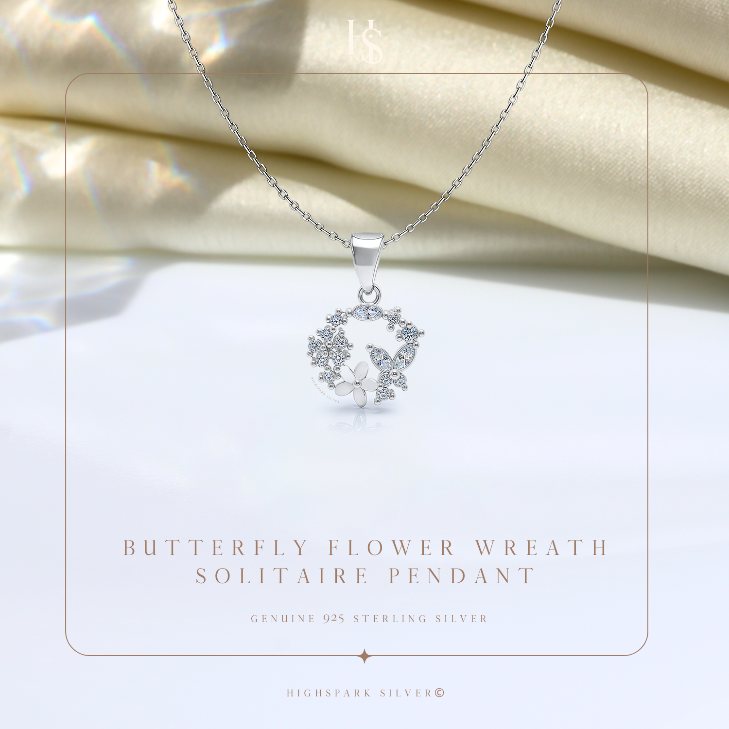 Butterfly Flower Wreath Solitaire Pendant in 92.5 Sterling Silver With Diamond like Brilliance Sparkling Zirconia