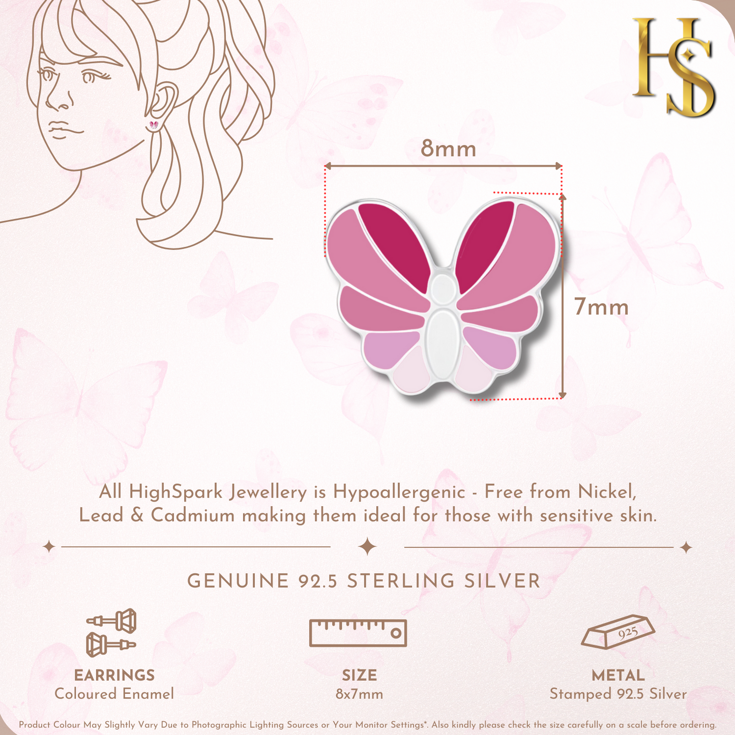 Candyfloss Butterfly Cute Enamel Stud Earrings in 925 Sterling Silver