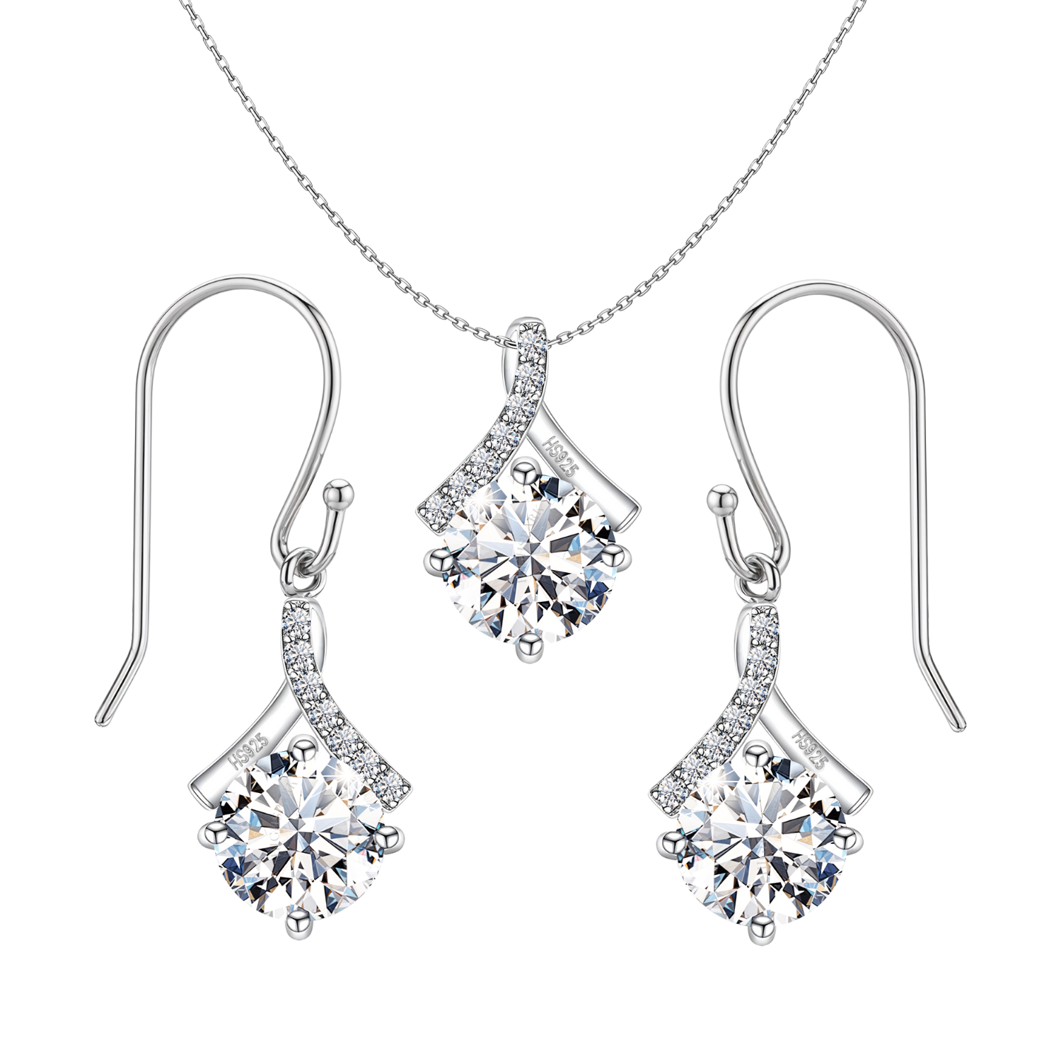 Starlit Solitaire Earrings, Pendant & Chain Set in 92.5 Sterling Silver With Diamond like Brilliance Zirconia