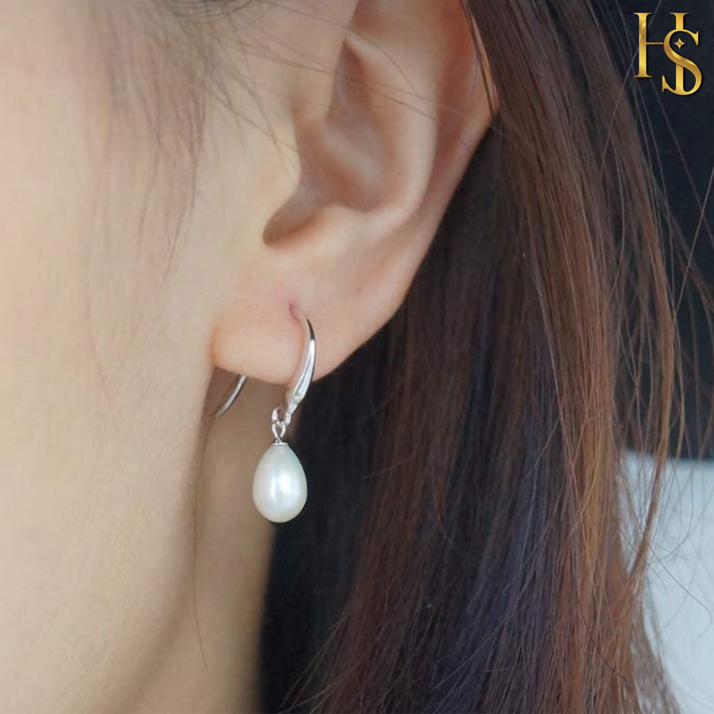 Classic Drop Pearl Earrings in 92.5 Sterling Silver for Women