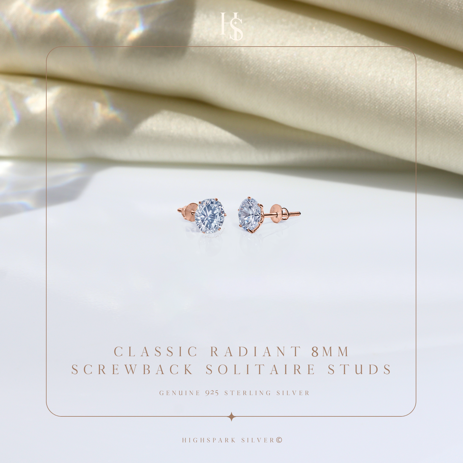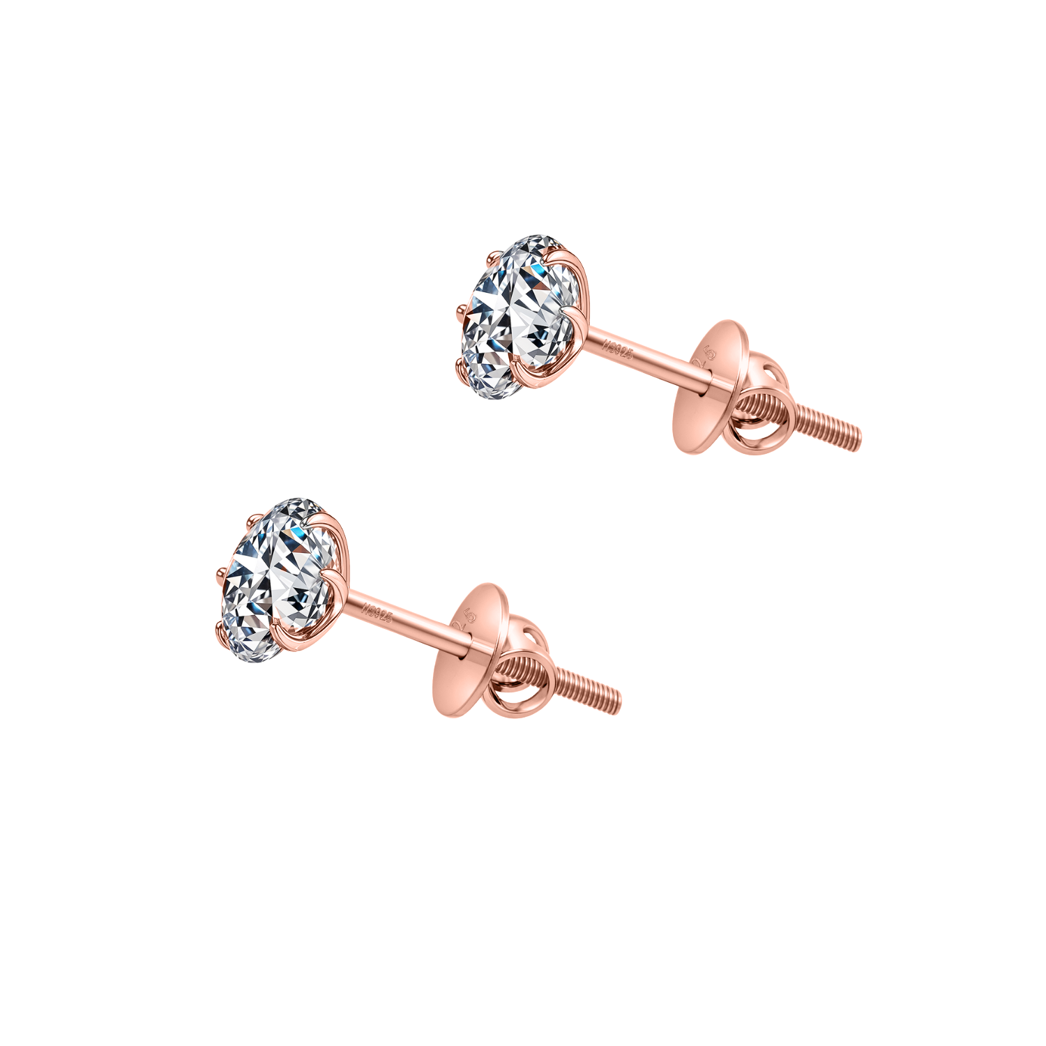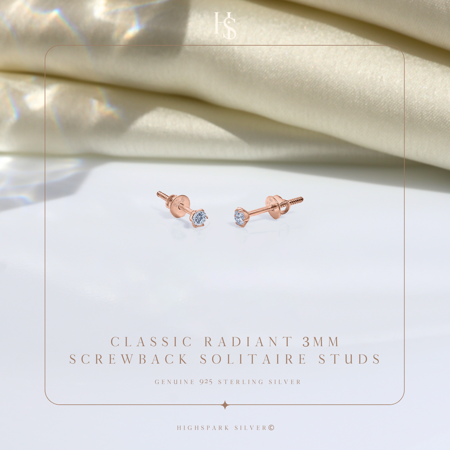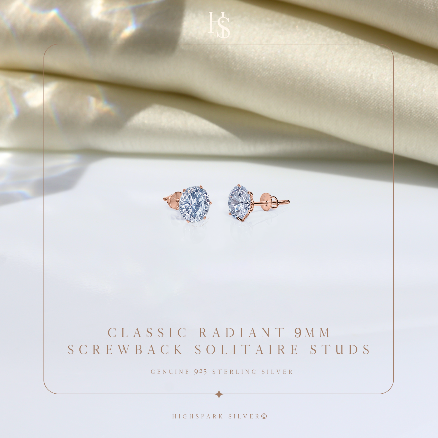 Classic Radiant Solitaire Screwback Stud Earrings in 925 Sterling Silver with 18k Rose Gold Finish For Women