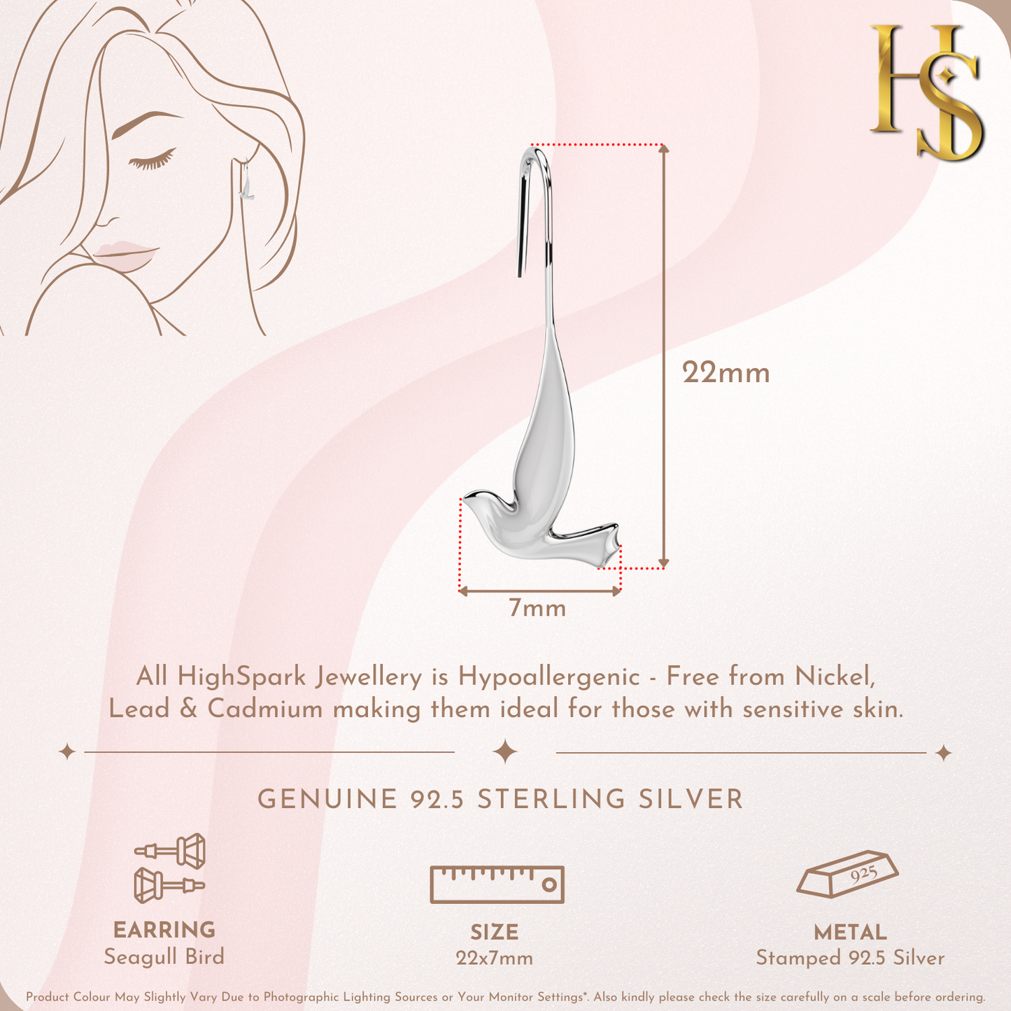 Classic Seagull Bird Earrings in 92.5 Sterling Silver for Women