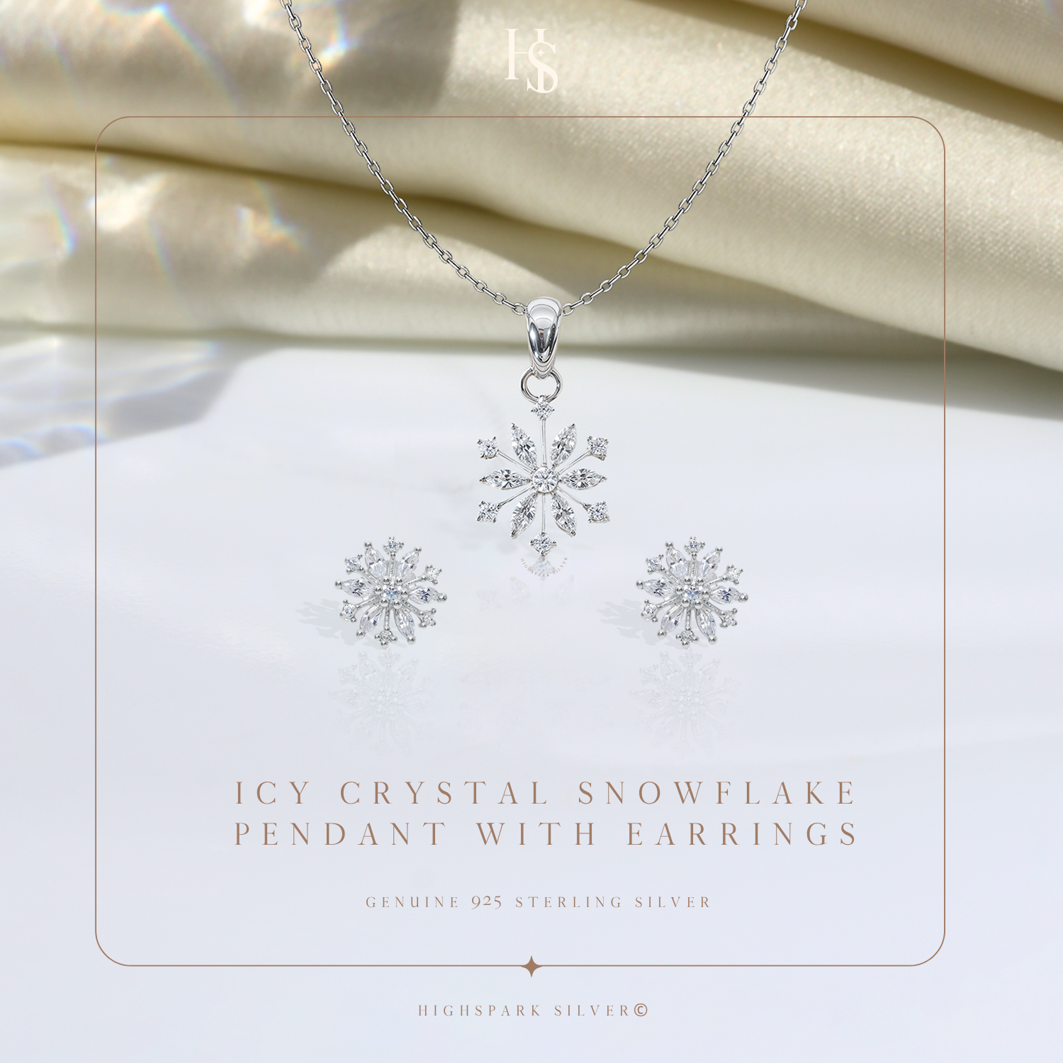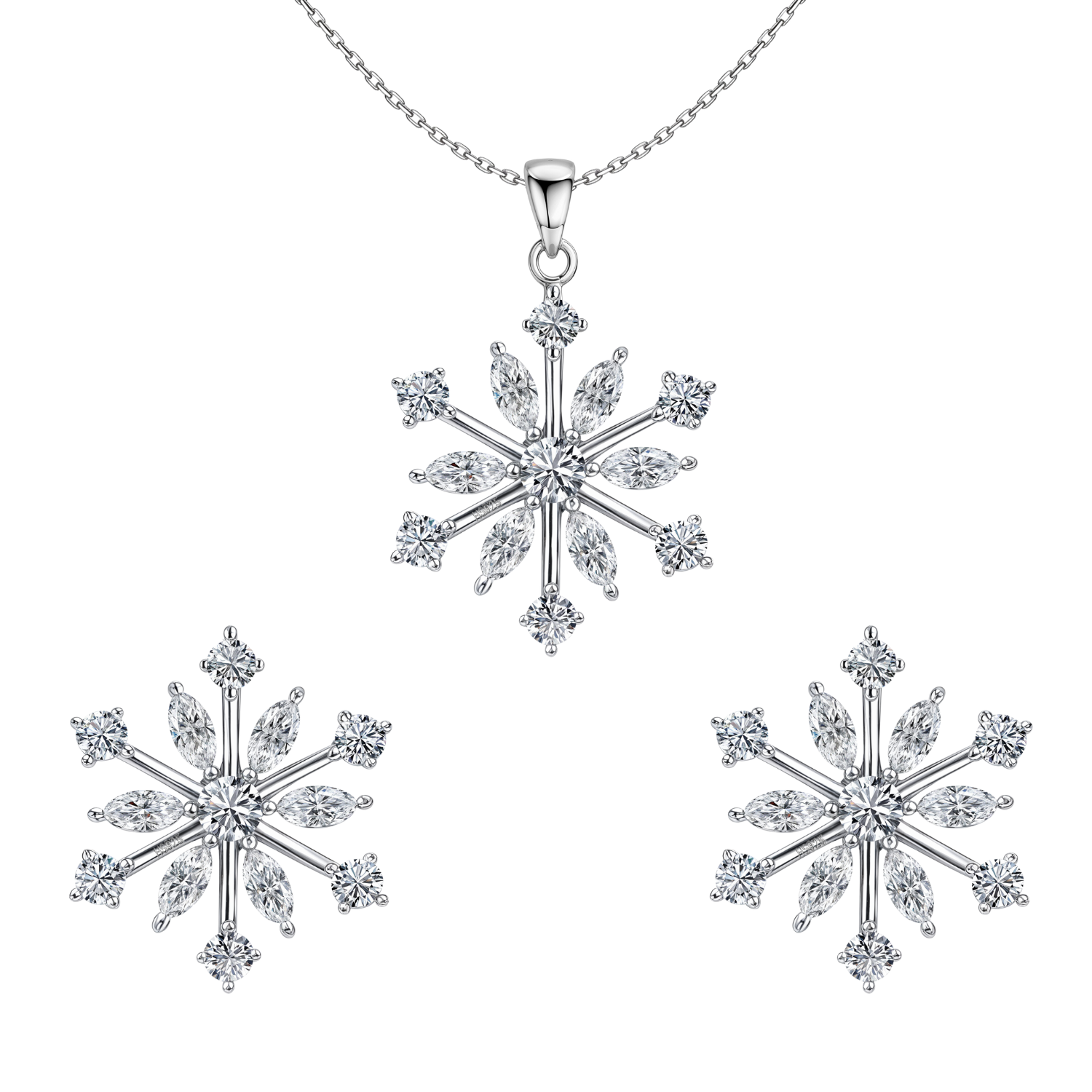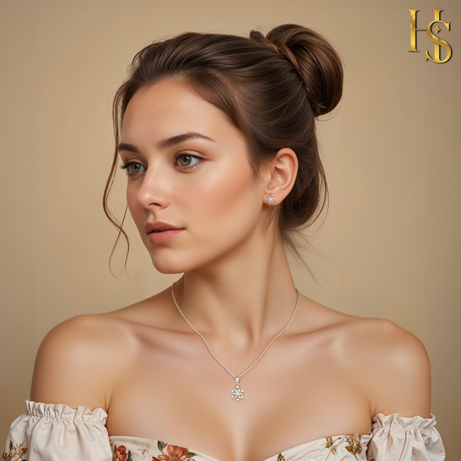 Classic Snowflake Solitaire Earrings, Pendant & Chain Set in 92.5 Sterling Silver With Diamond like Brilliance Zirconia