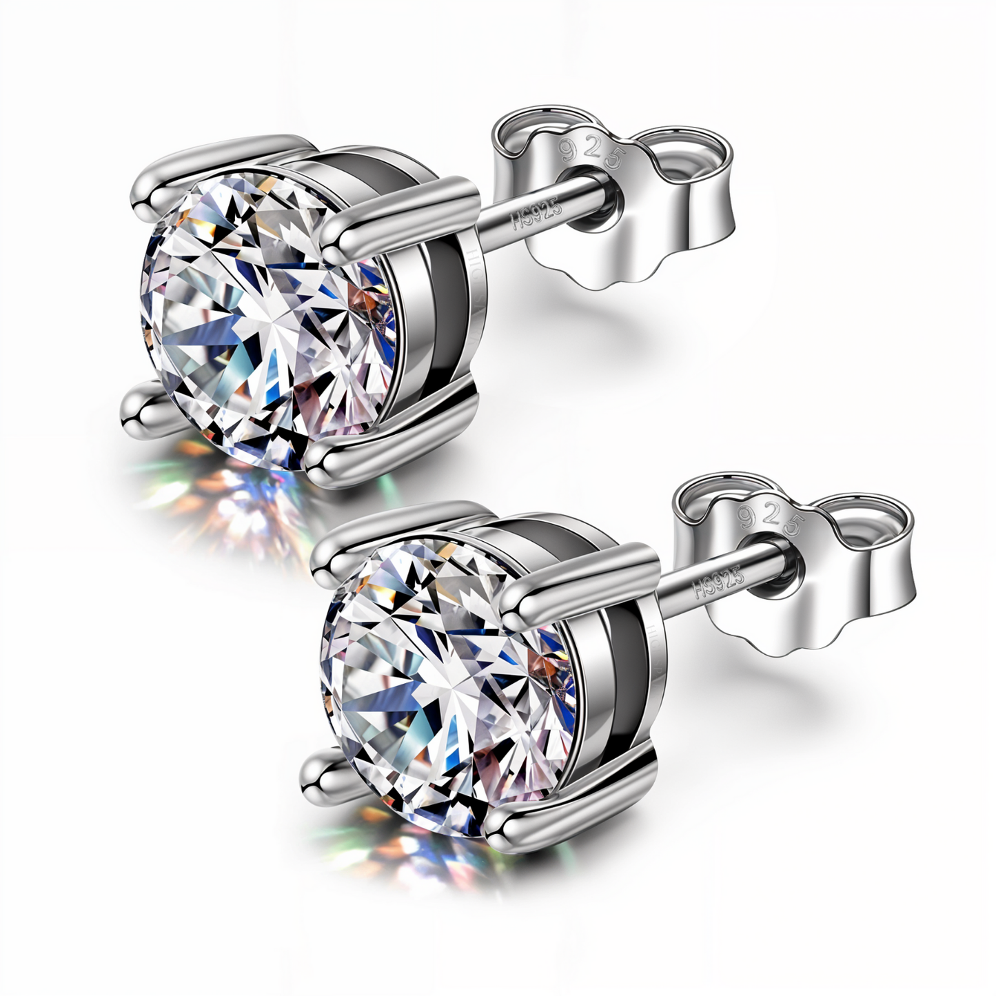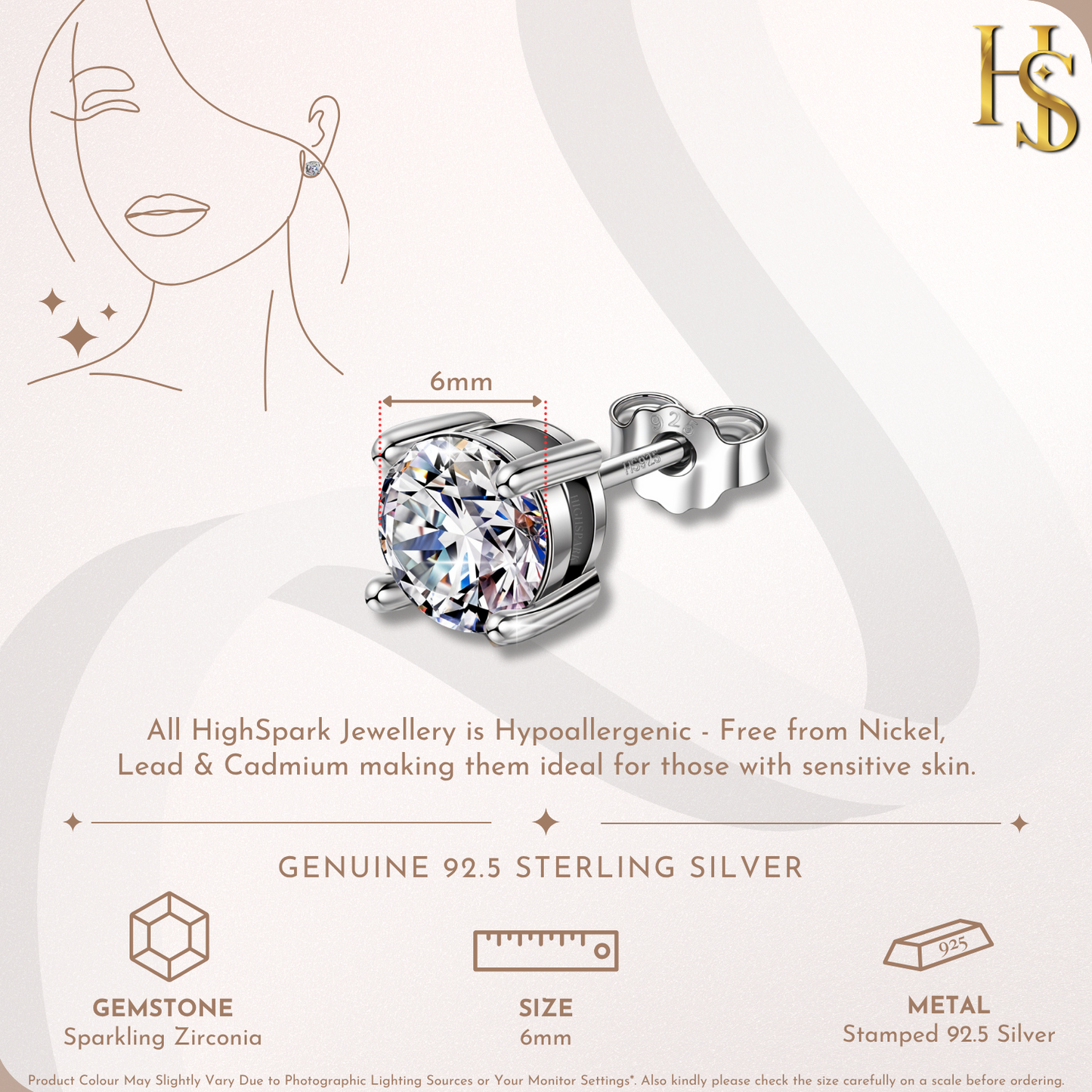 Women's Solitaire Birthstone Earrings - 925 Silver - April Clear Sparkling Zirconia