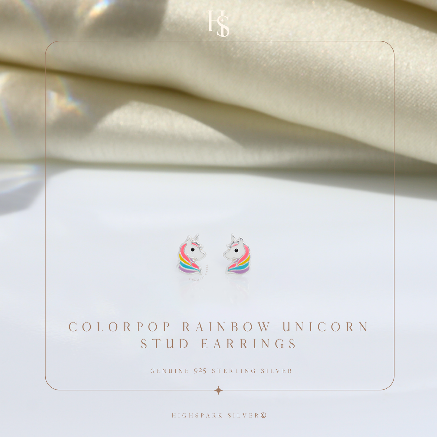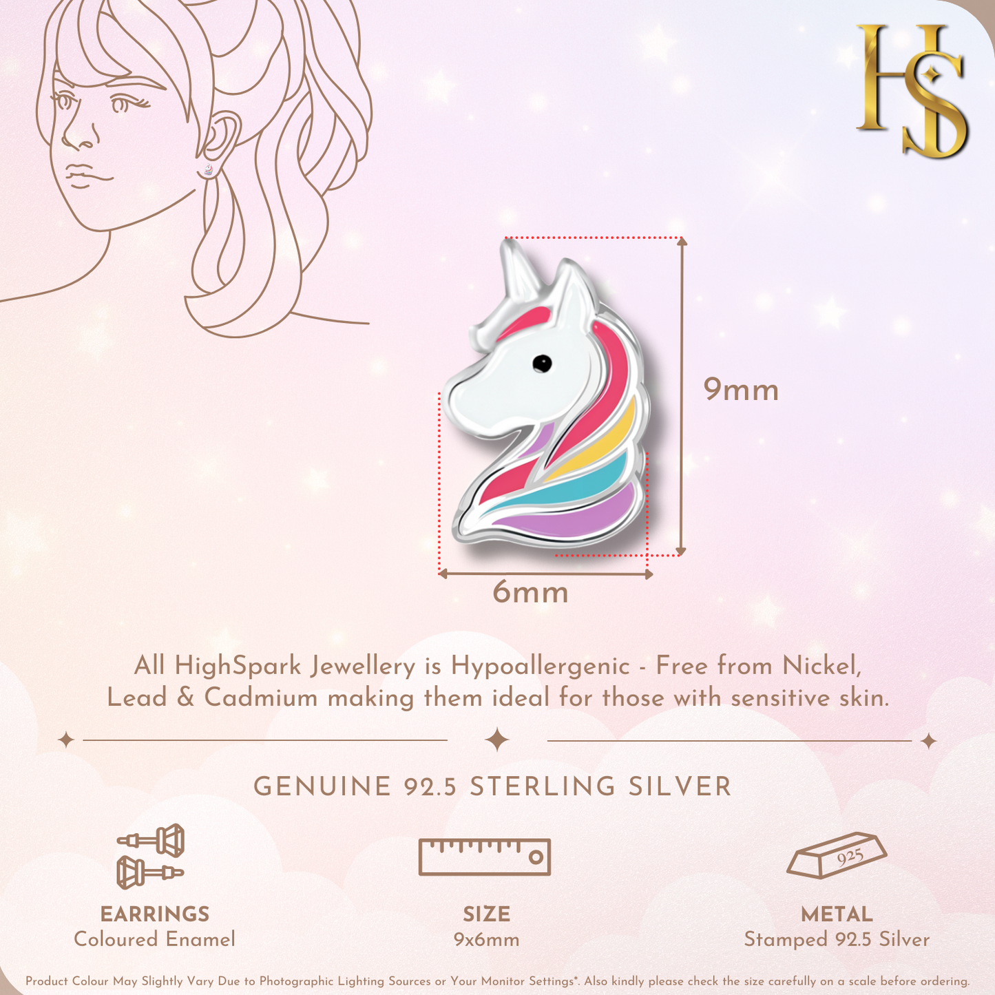 Colourpop Rainbow Unicorn Cute Enamel Stud Earrings in 925 Sterling Silver