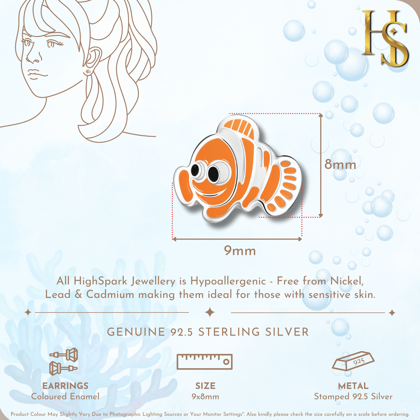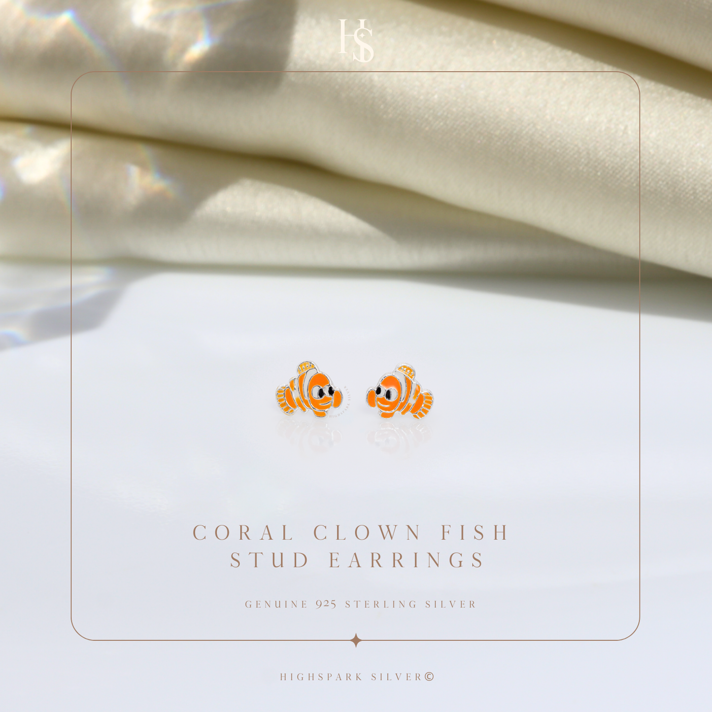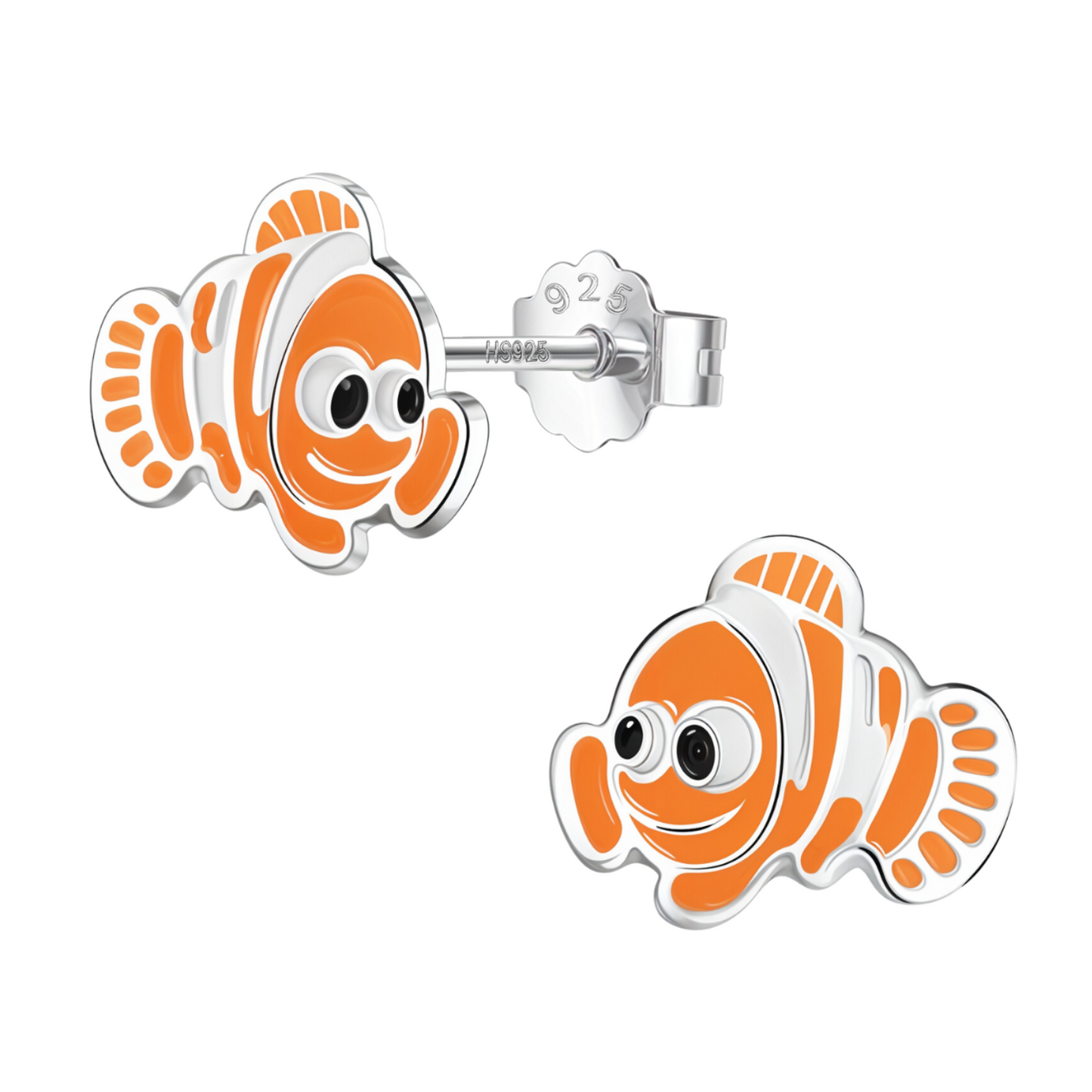 Coral Clown Fish Cute Enamel Stud Earrings in 925 Sterling Silver