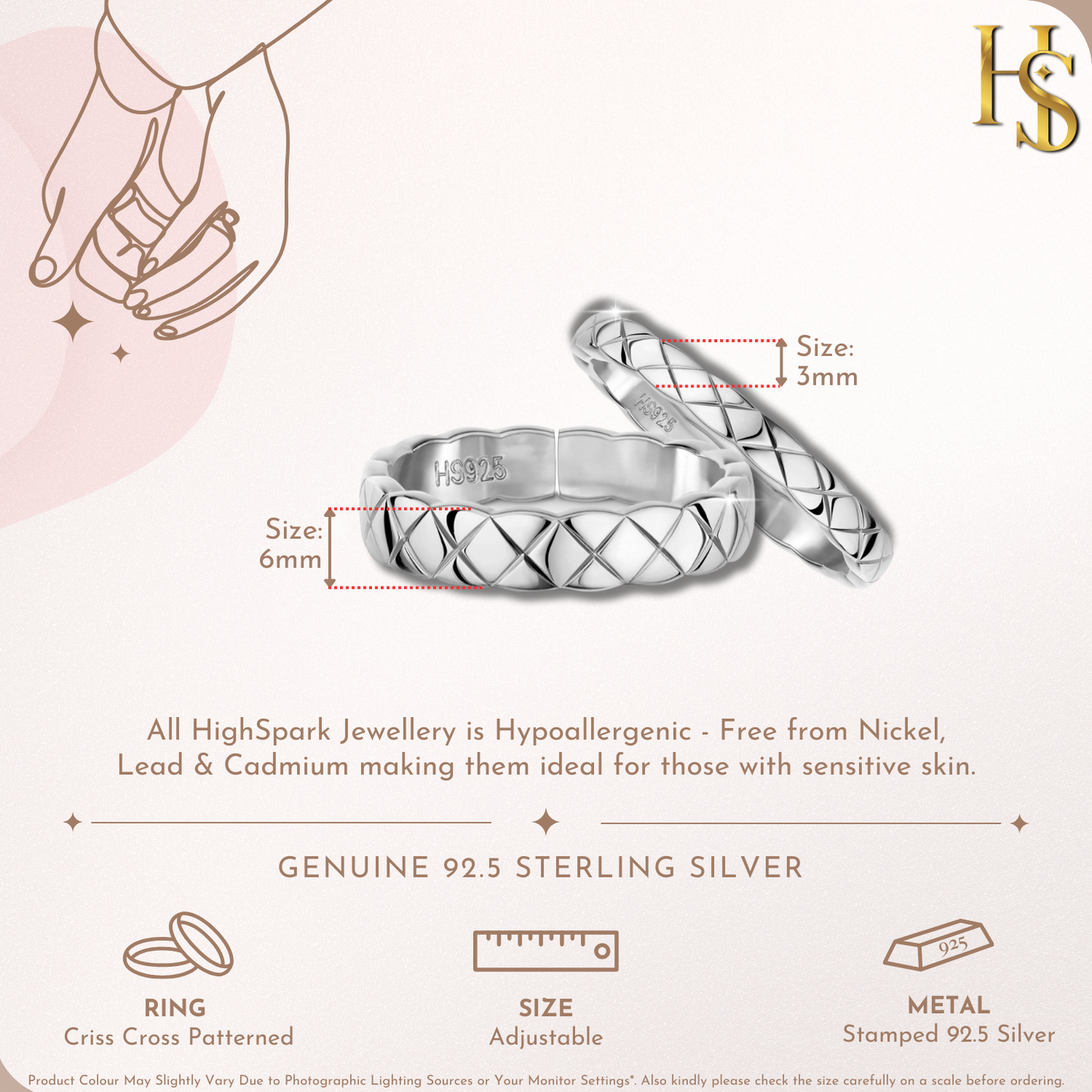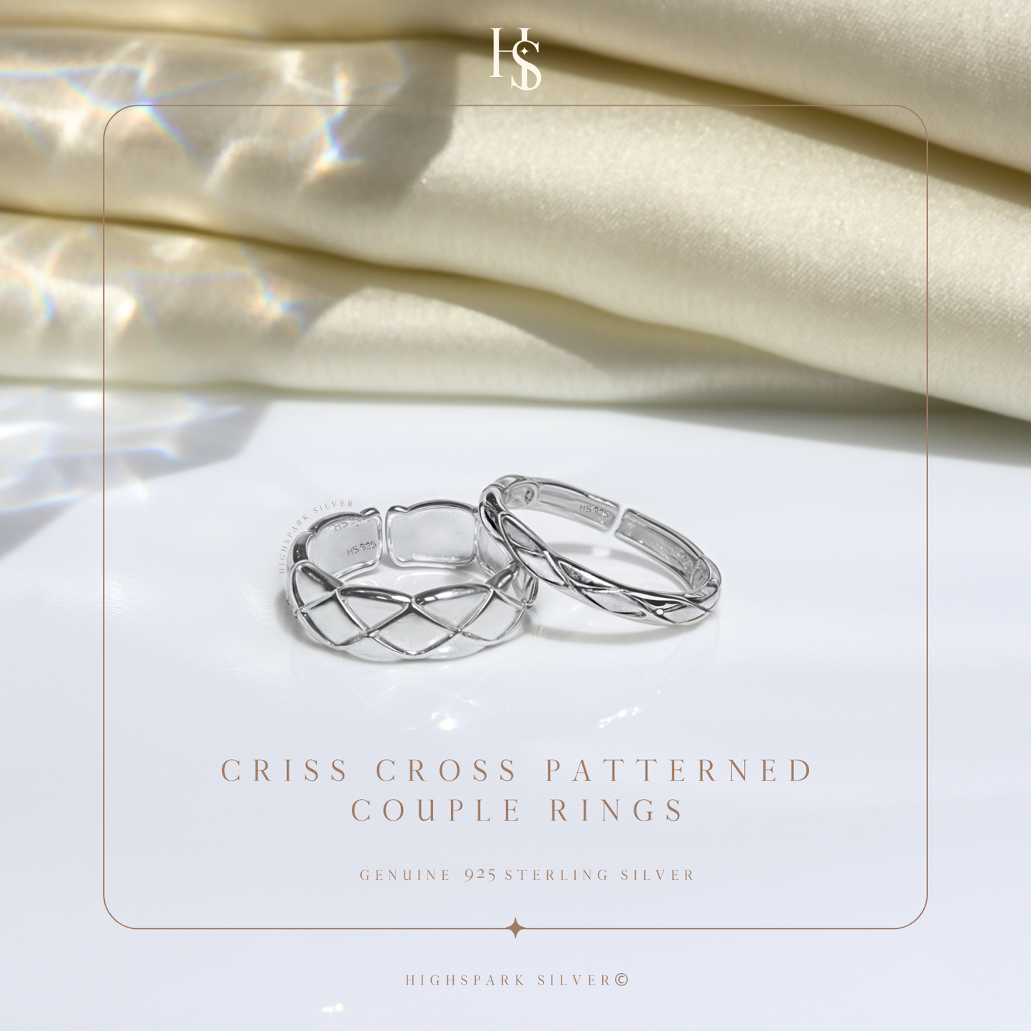 Criss Cross Patterned Couple Rings For Men & Women in 92.5 Sterling Silver