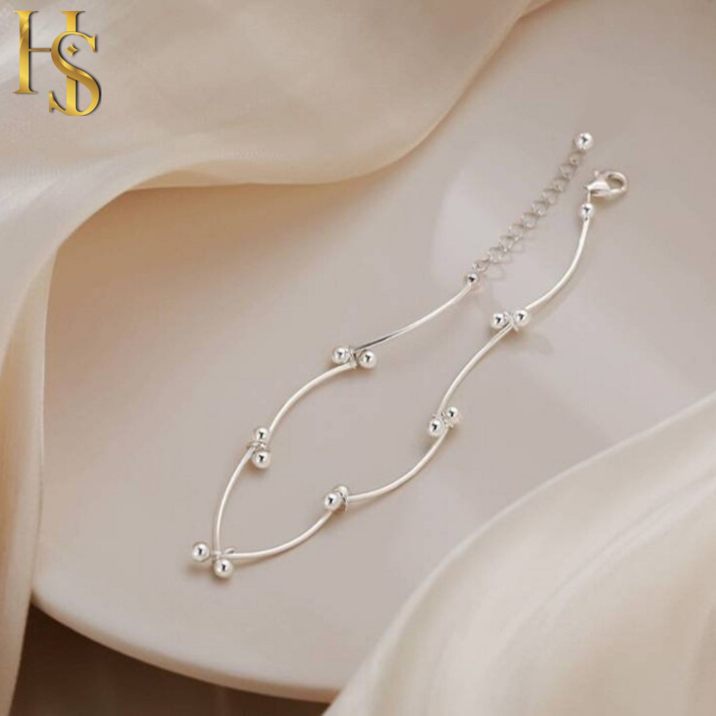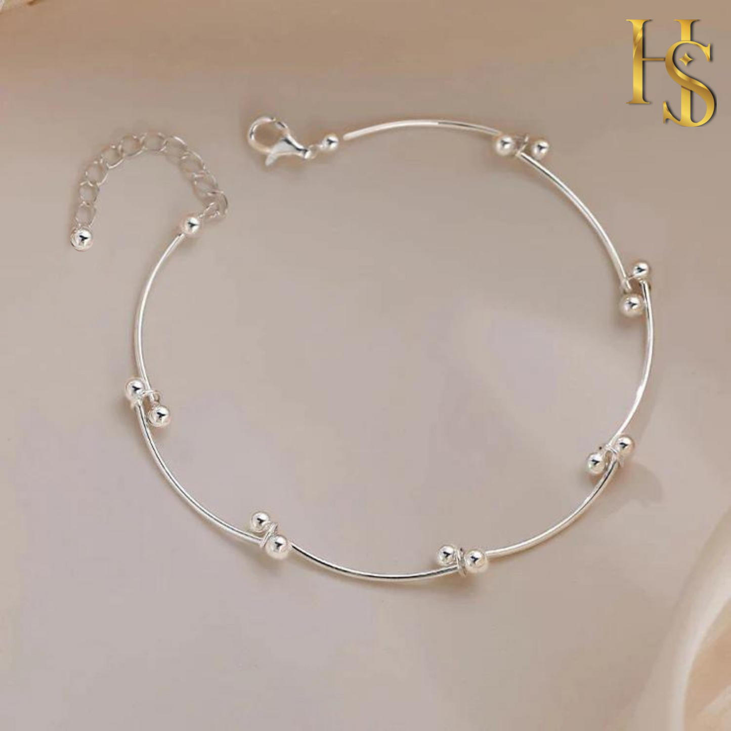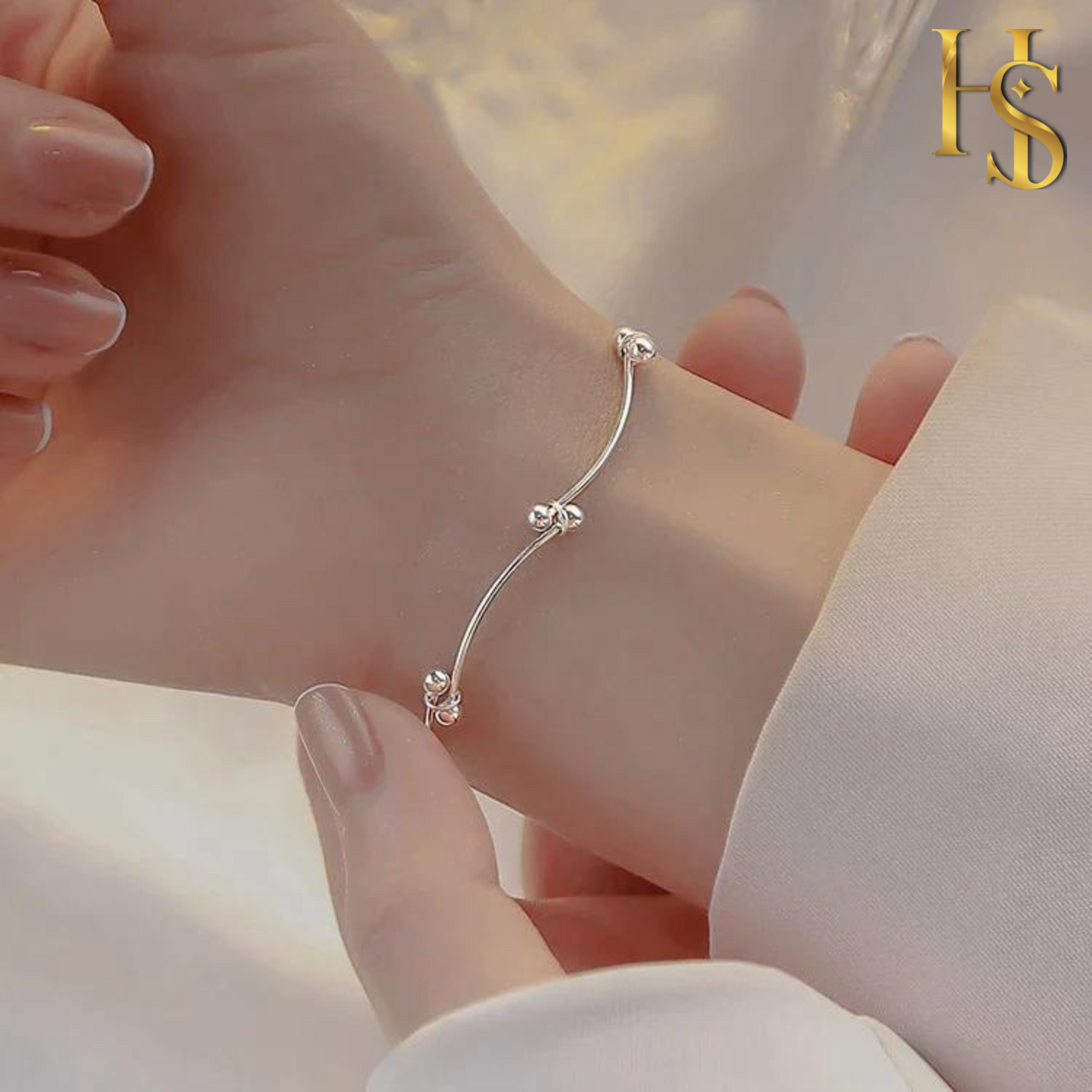 Curved Ball Bean Bean Knot Bracelet in 925 Sterling Silver for Women