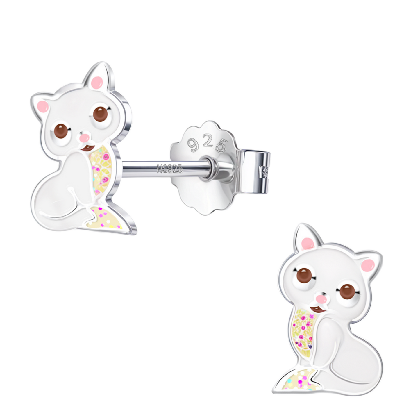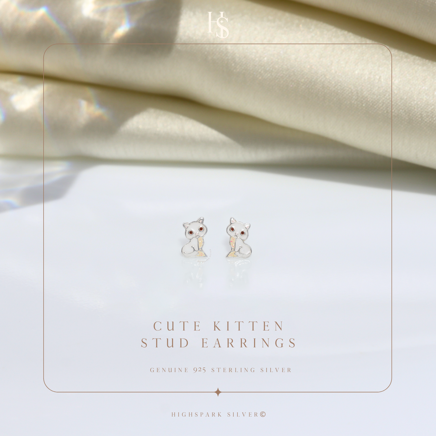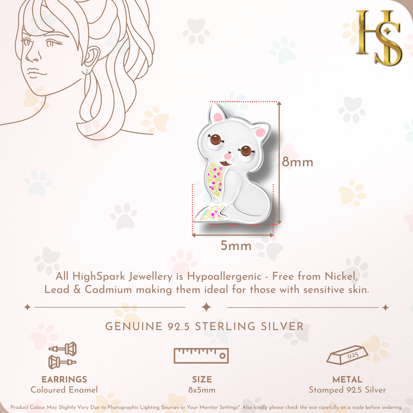 Cute Kitten Cute Enamel Stud Earrings in 925 Sterling Silver