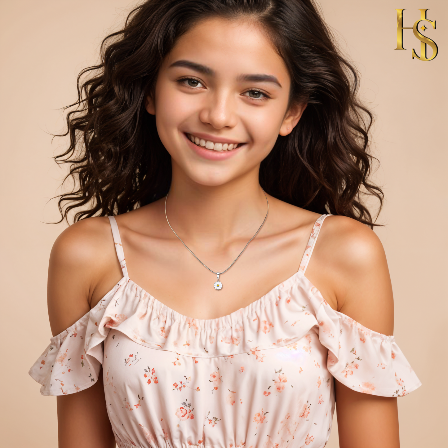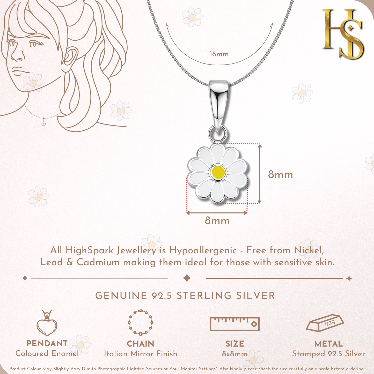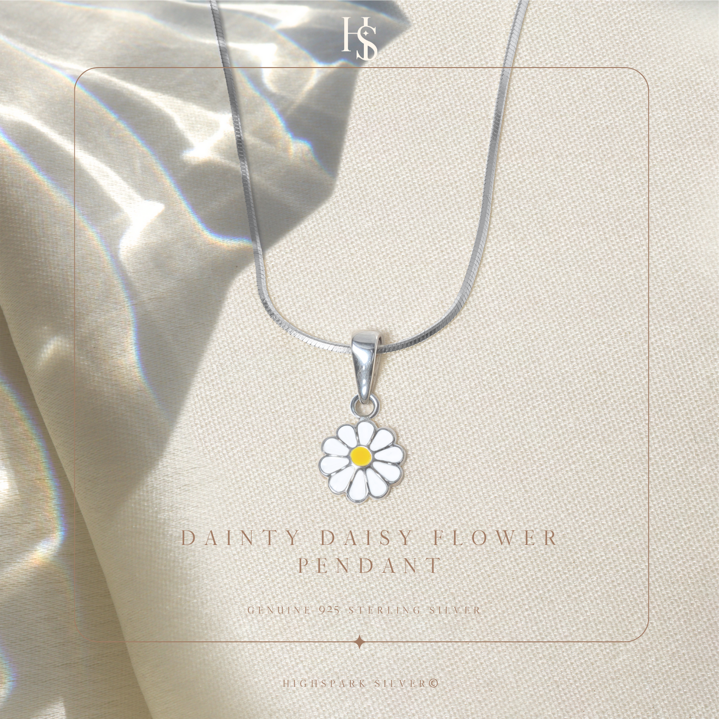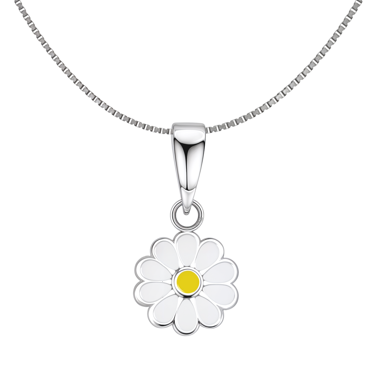 Dainty Daisy Flower Cute Enamel Pendant in 925 Sterling Silver