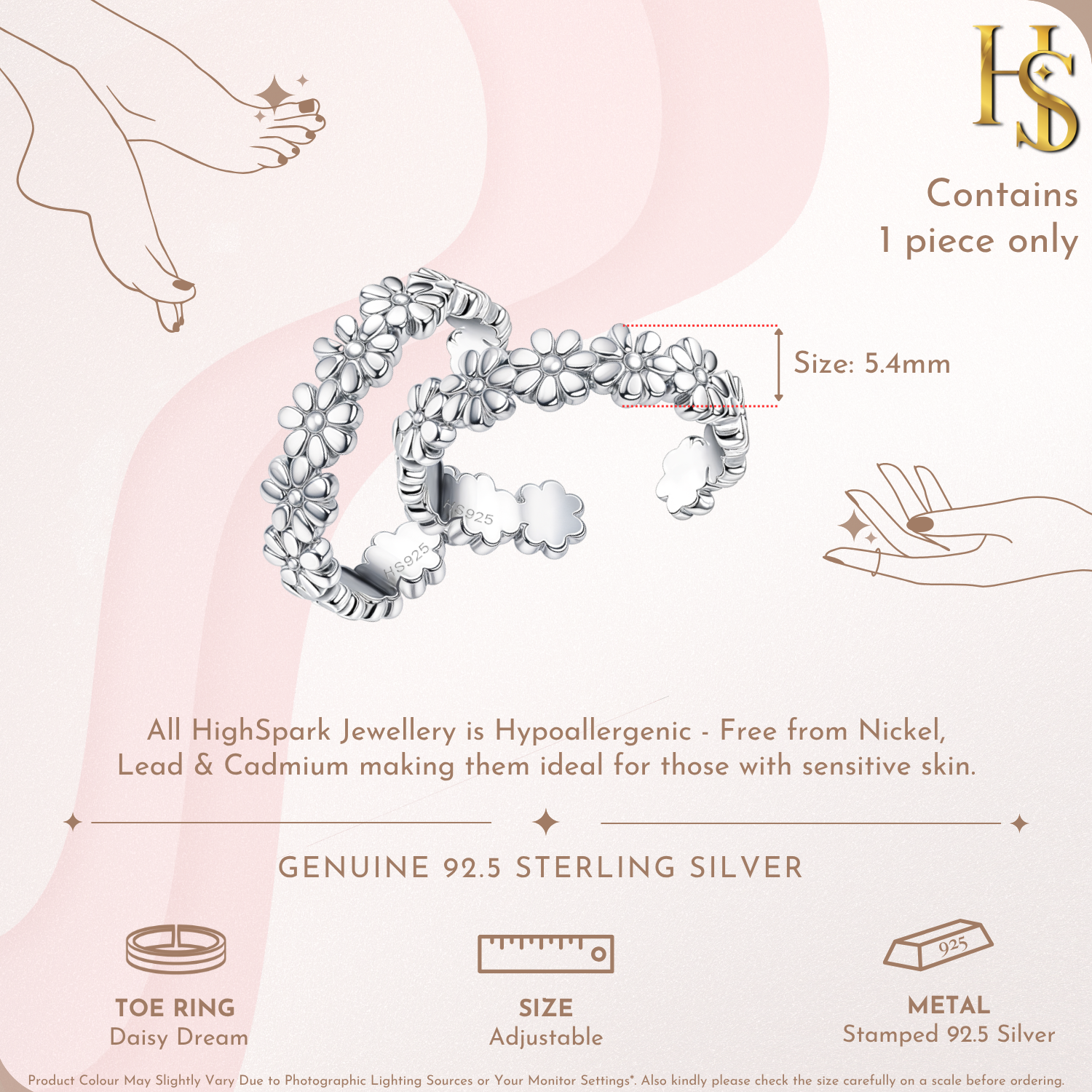 Daisy Dream Toe Rings - Adjustable in 925 Sterling Silver - 2 Piece