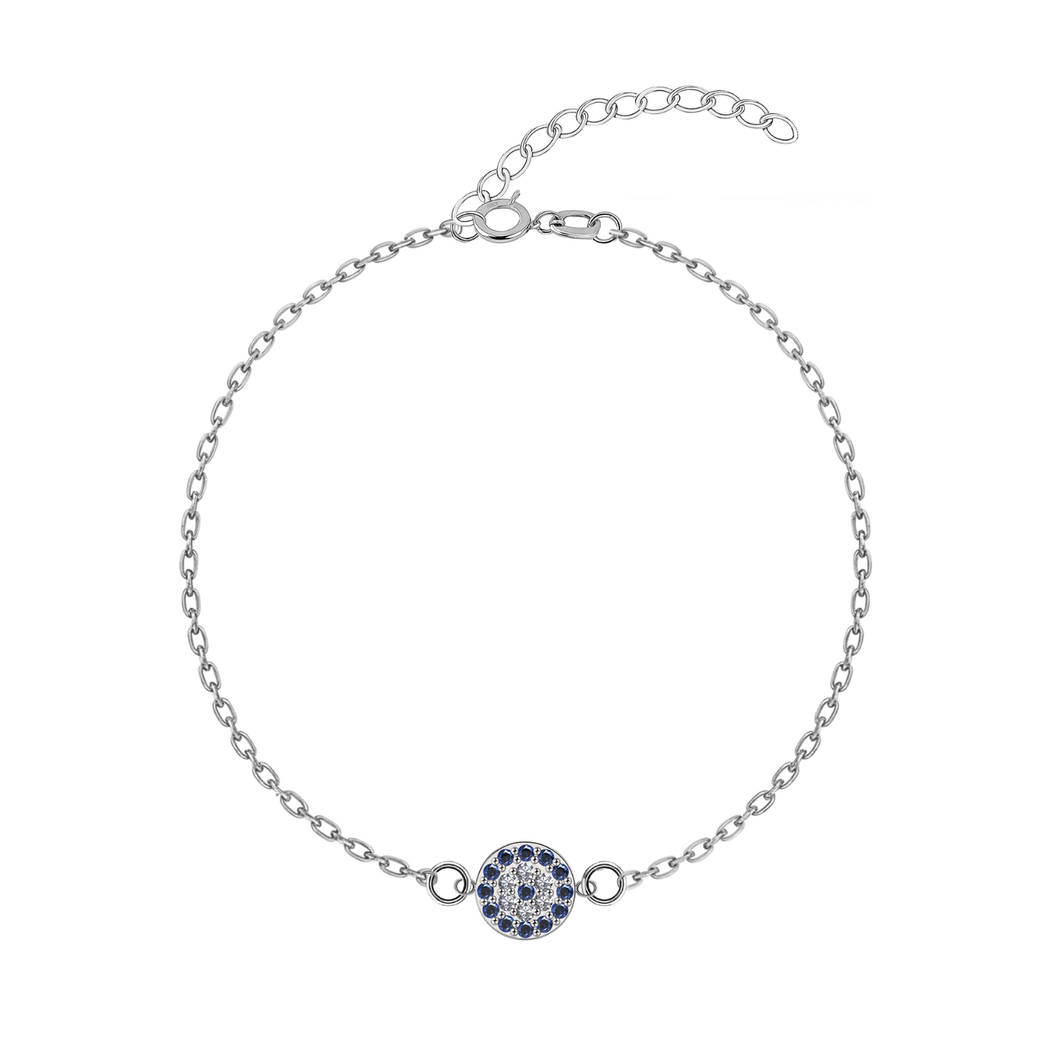 Dark Blue Sparkling Evil Eye Bracelet In 925 Sterling Silver For Women