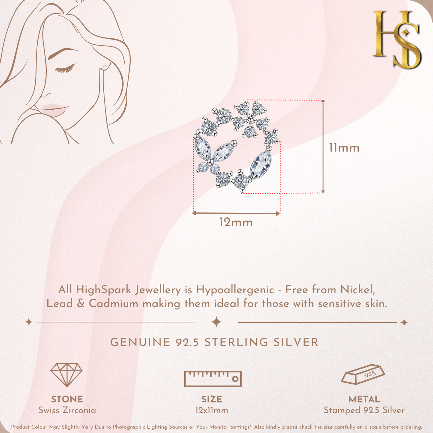 Dazzling Butterfly Wreath Solitaire Earrings in 92.5 Sterling Silver With Diamond like Brilliance Sparkling Zirconia