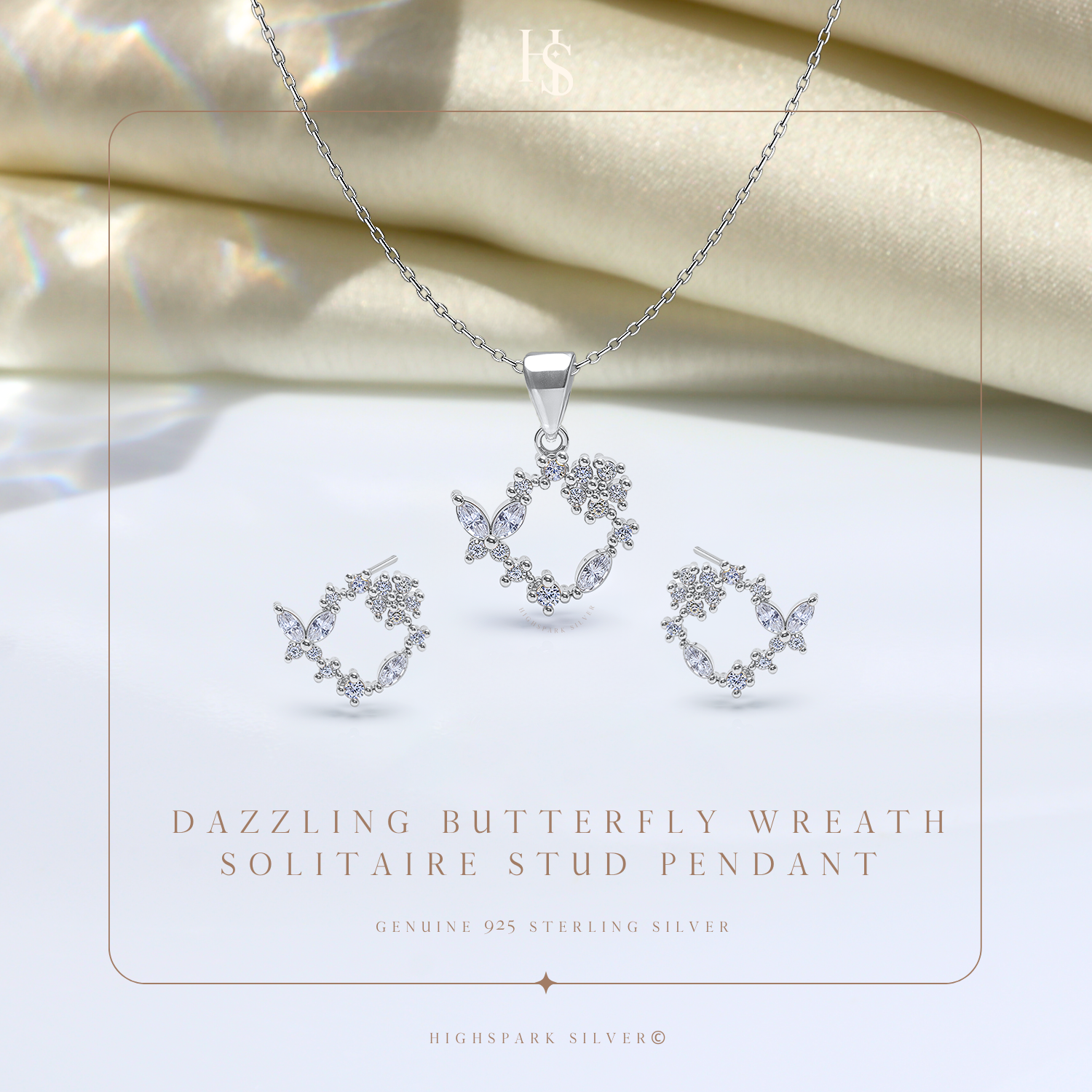 Dazzling Butterfly Wreath Solitaire Earrings, Pendant & Chain Set in 92.5 Sterling Silver With Diamond like Brilliance Sparkling Zirconia