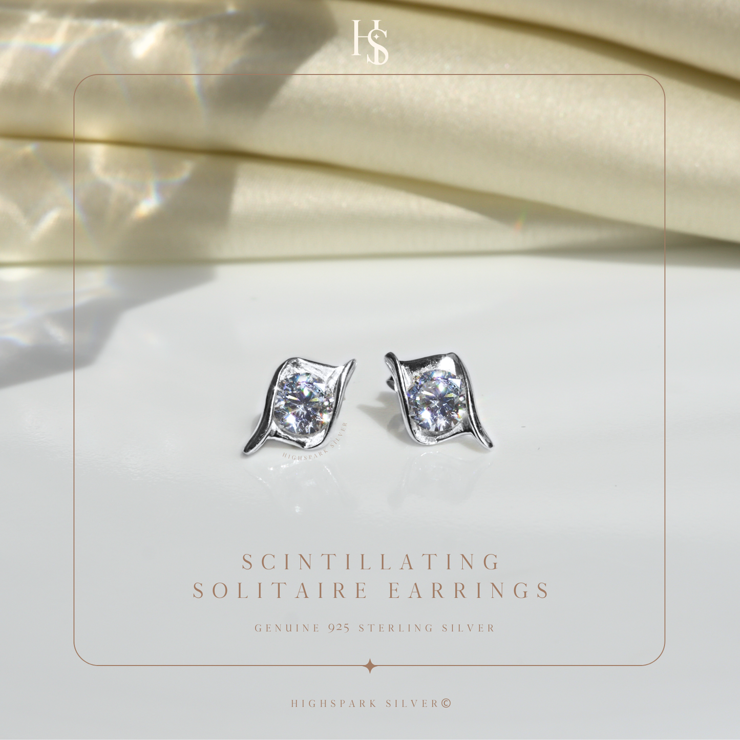 Designer Solitaire Earrings in 92.5 Silver embellished with Swiss Zirconia