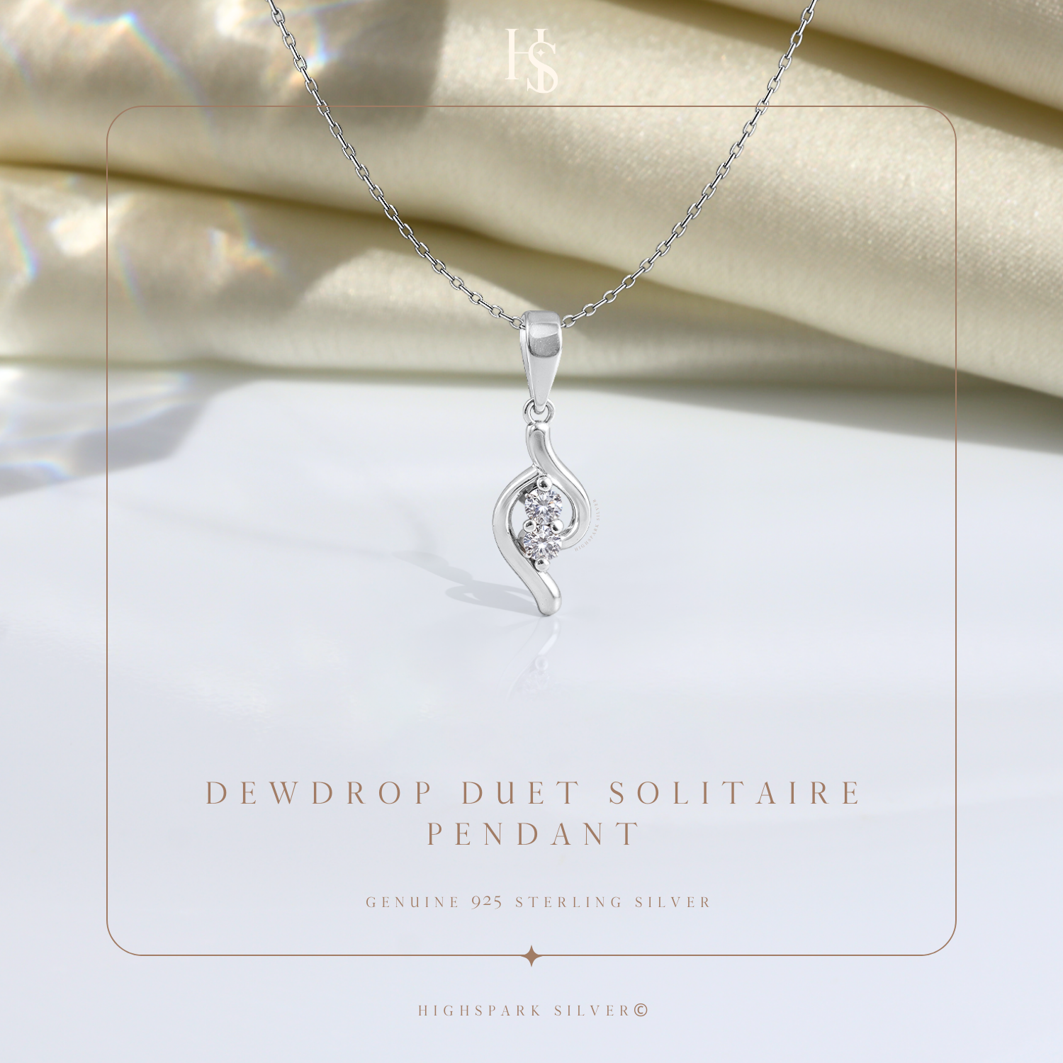 Dewdrop Duet Solitaire Pendant With Chain in 925 Sterling Silver For Women