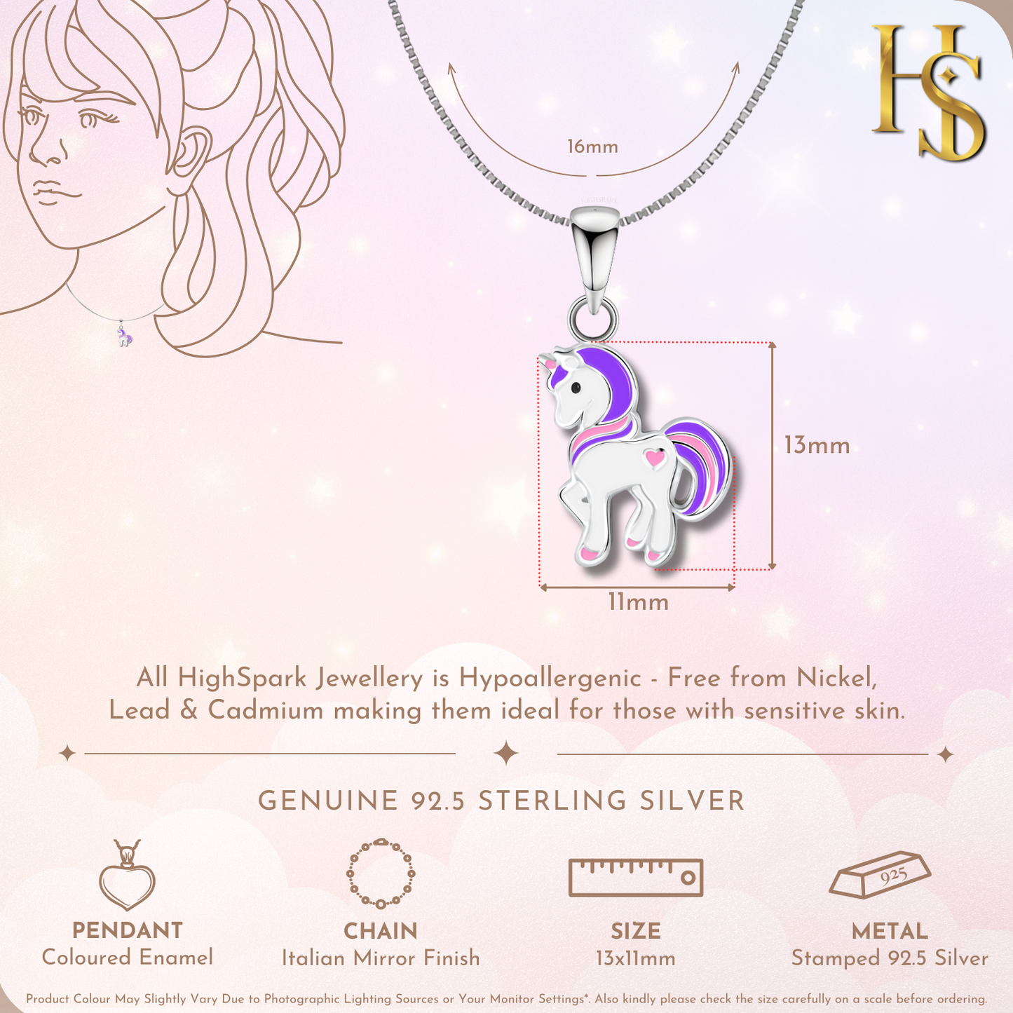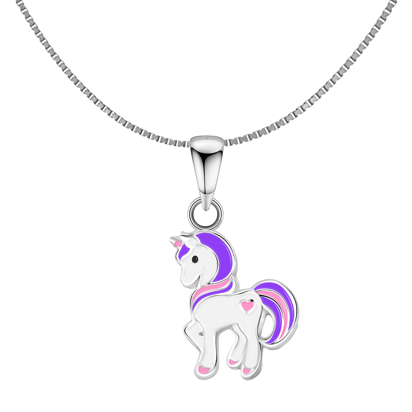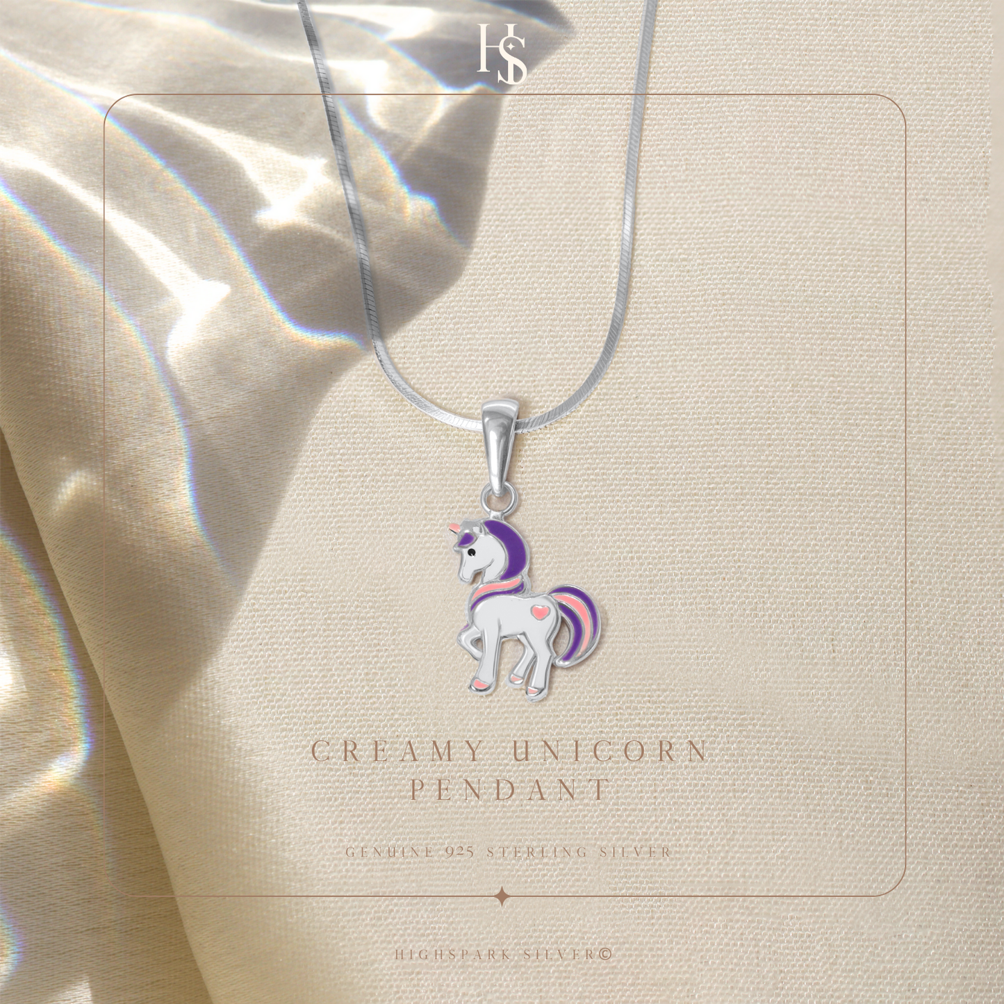 Dreamy Unicorn Cute Enamel Pendant in 925 Sterling Silver