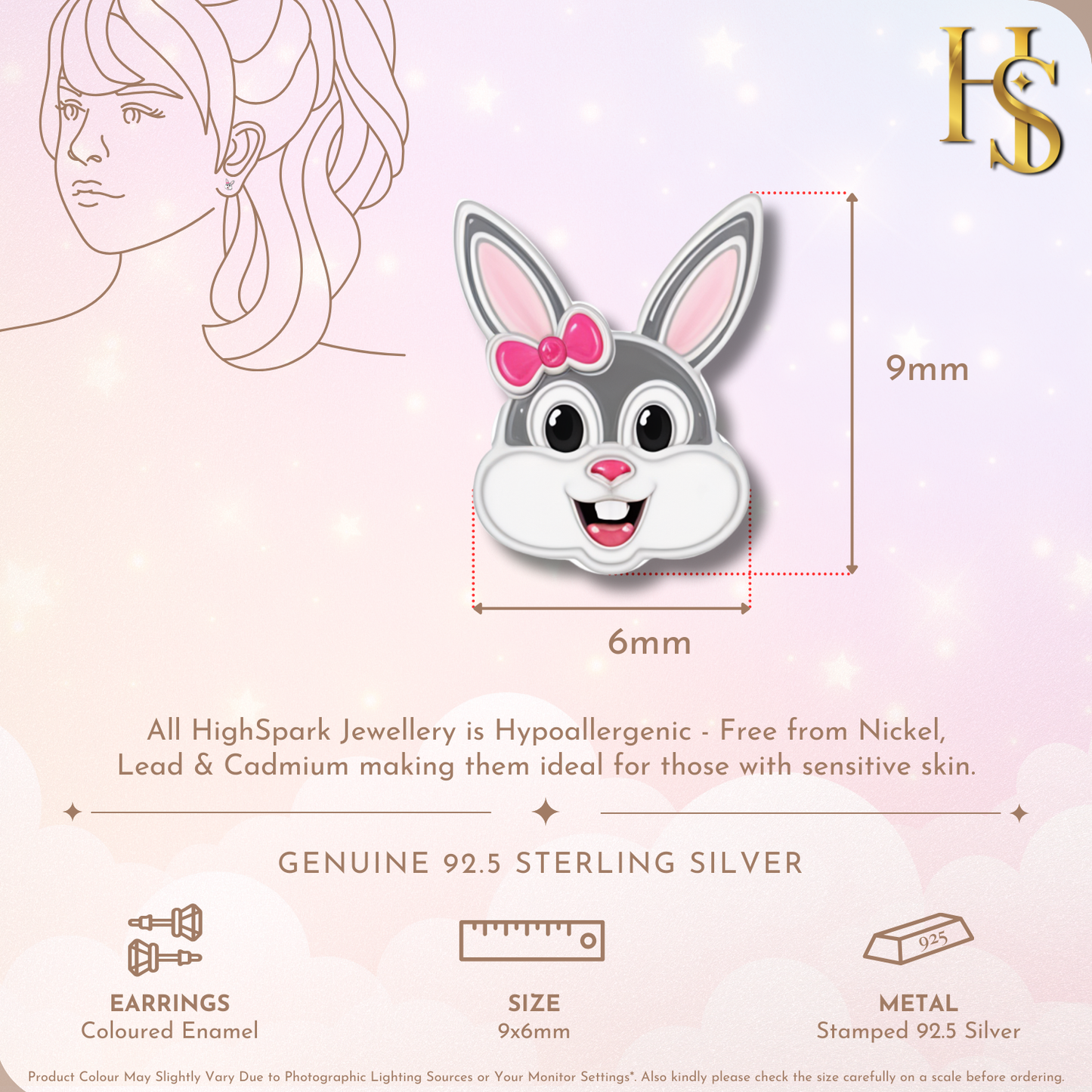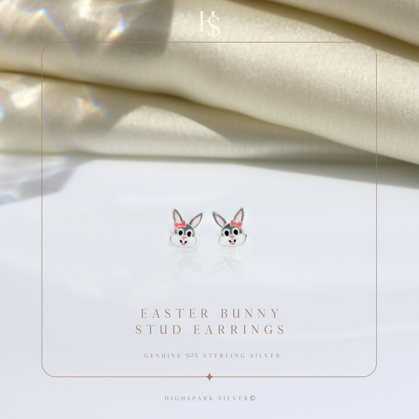 Easter Bunny Cute Enamel Stud Earrings in 925 Sterling Silver