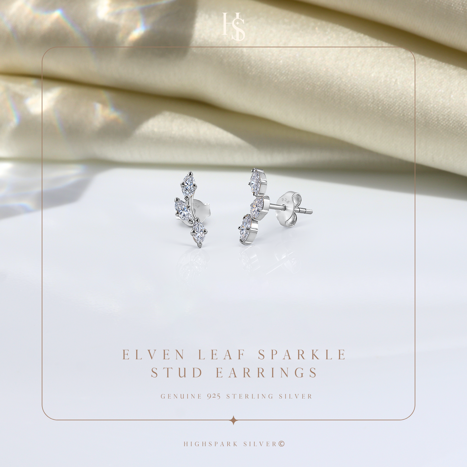 Eleven Leaf Sparkle Stud Earrings in 925 Sterling Silver for Women