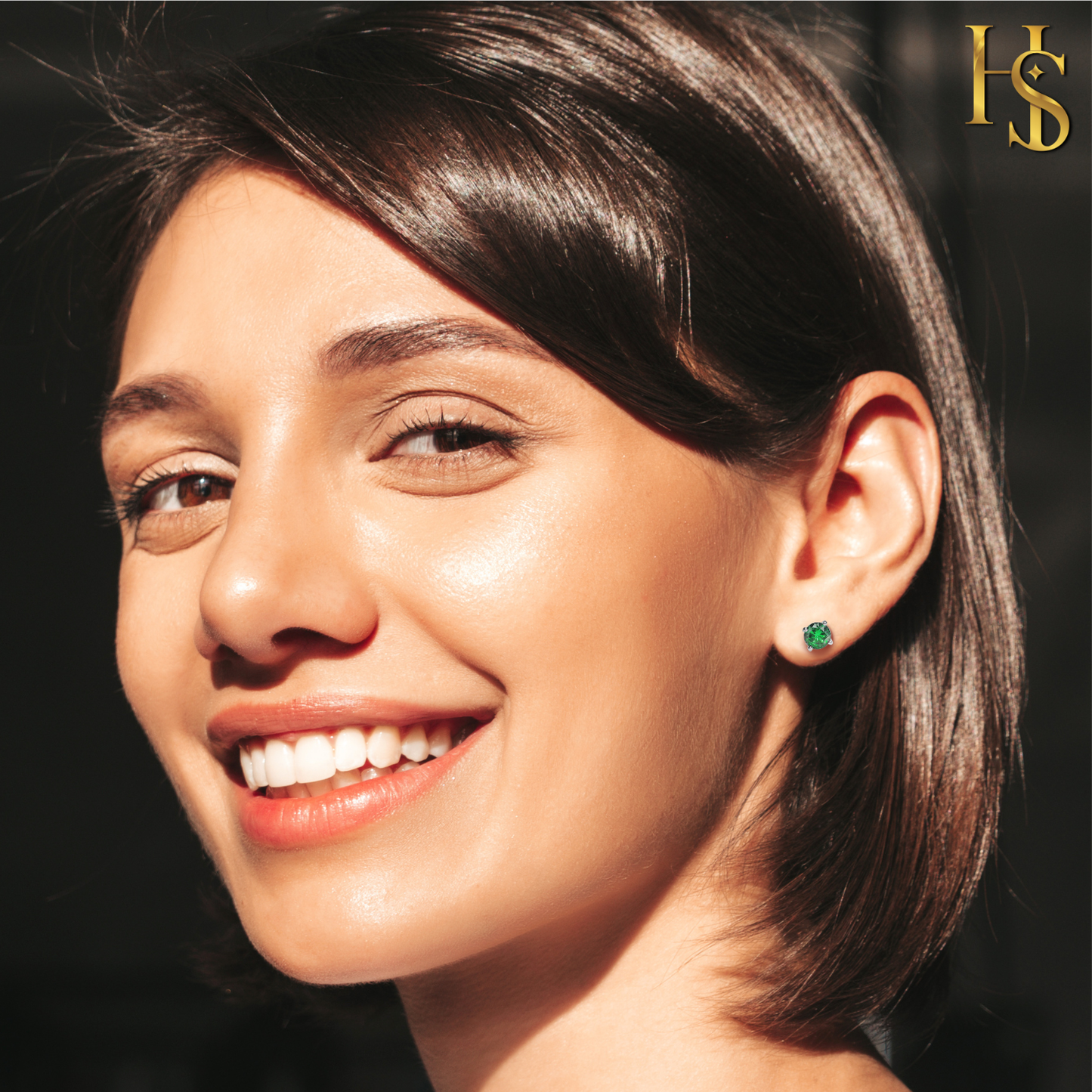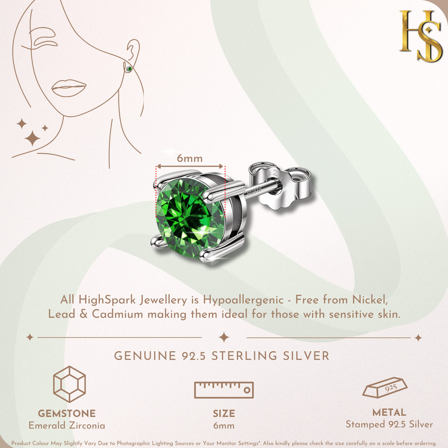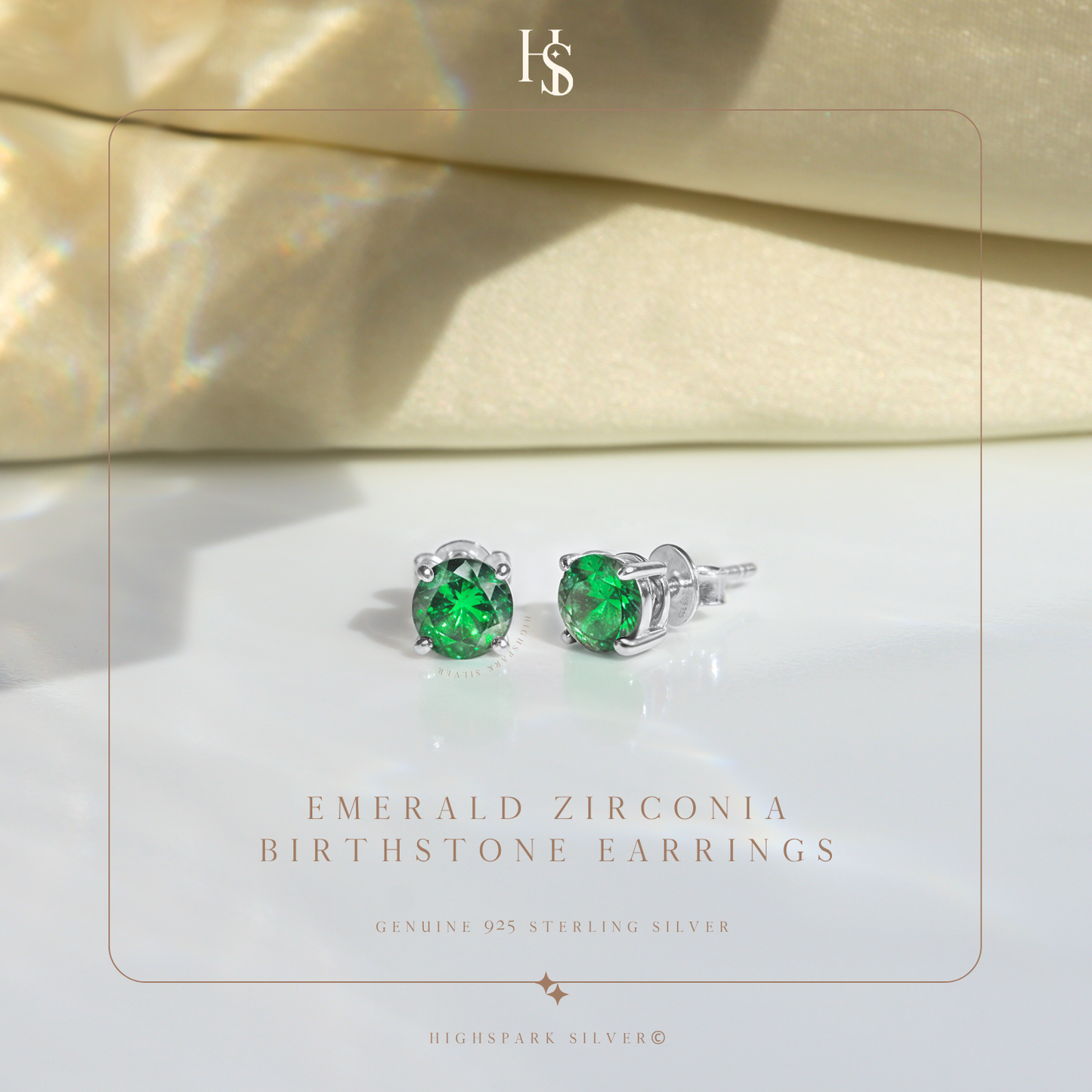 Women's Solitaire Birthstone Earrings - 925 Silver - May Emerald Sparkling Zirconia