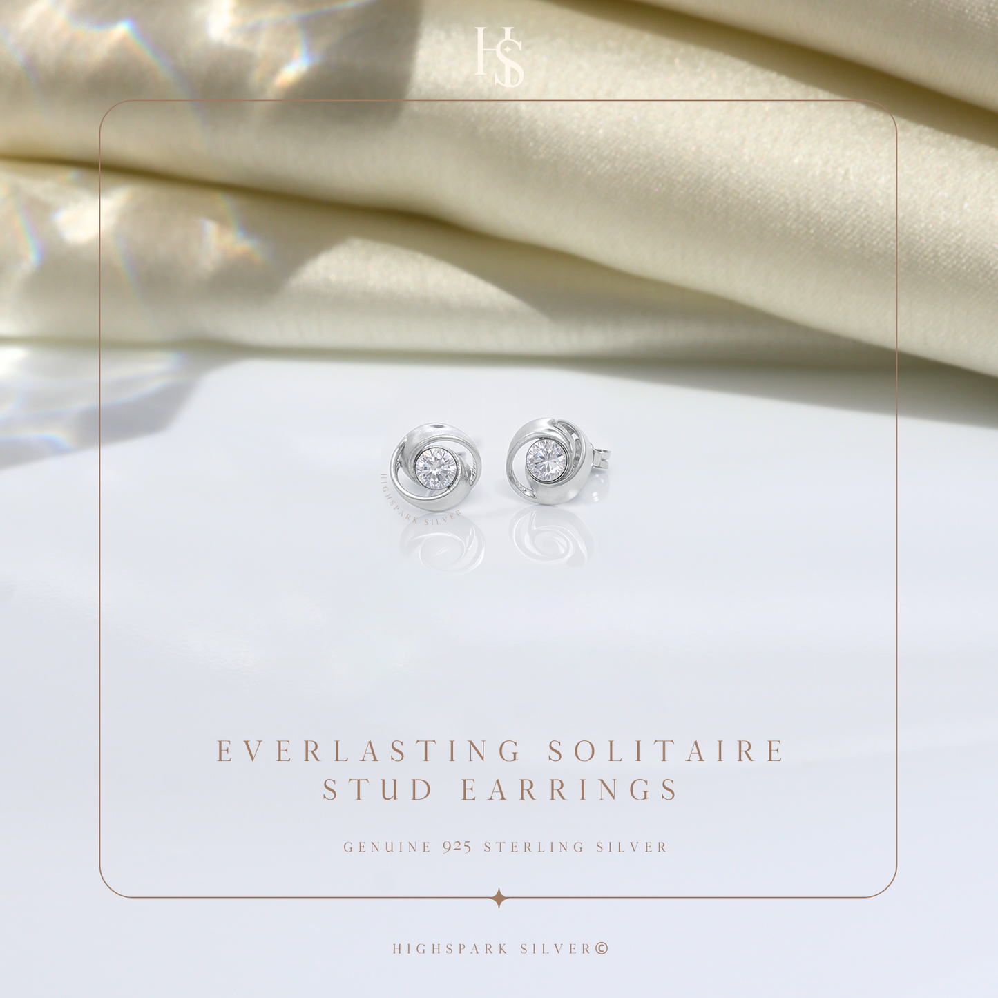 Everlasting Solitaire Stud Earrings in 92.5 Sterling Silver with Diamond like Brilliance Zirconia
