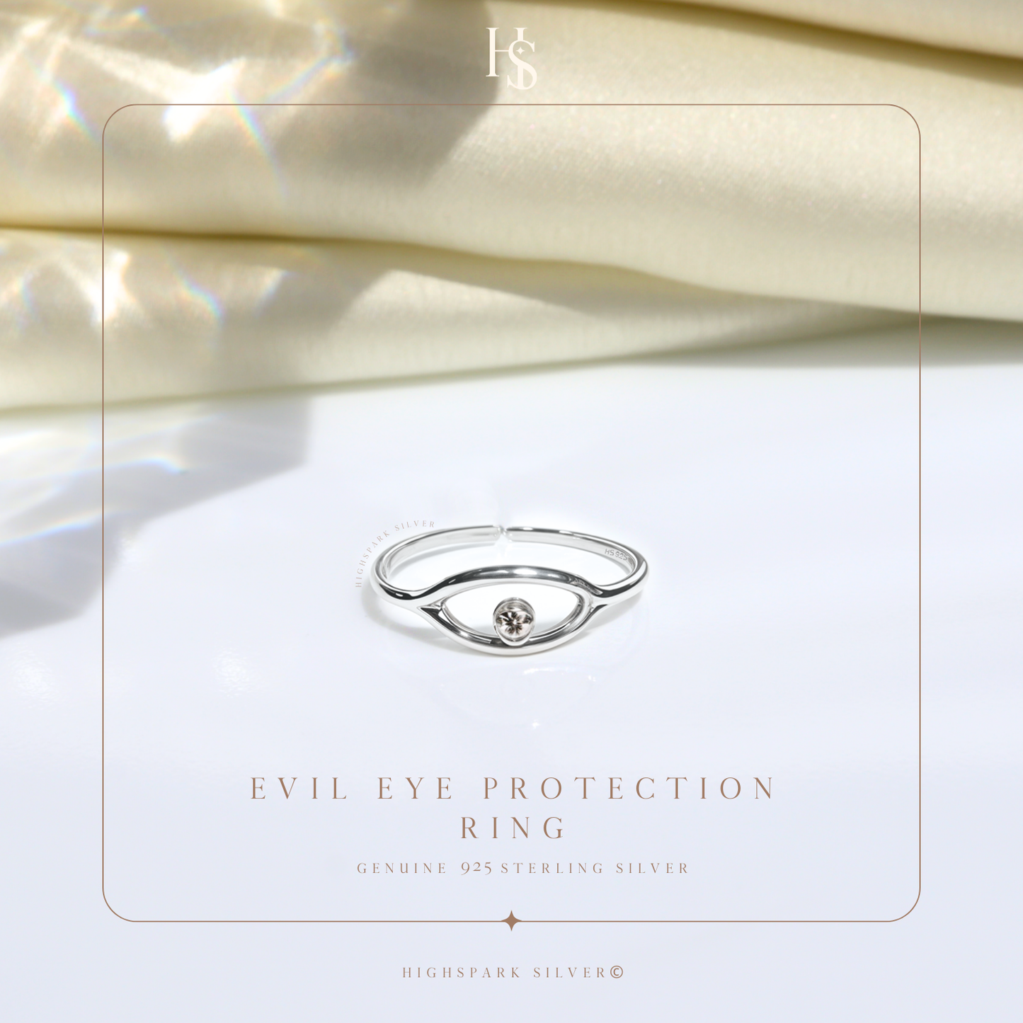Evil Eye Protection Ring in 92.5 Sterling Silver with Diamond like Brilliance Zirconia