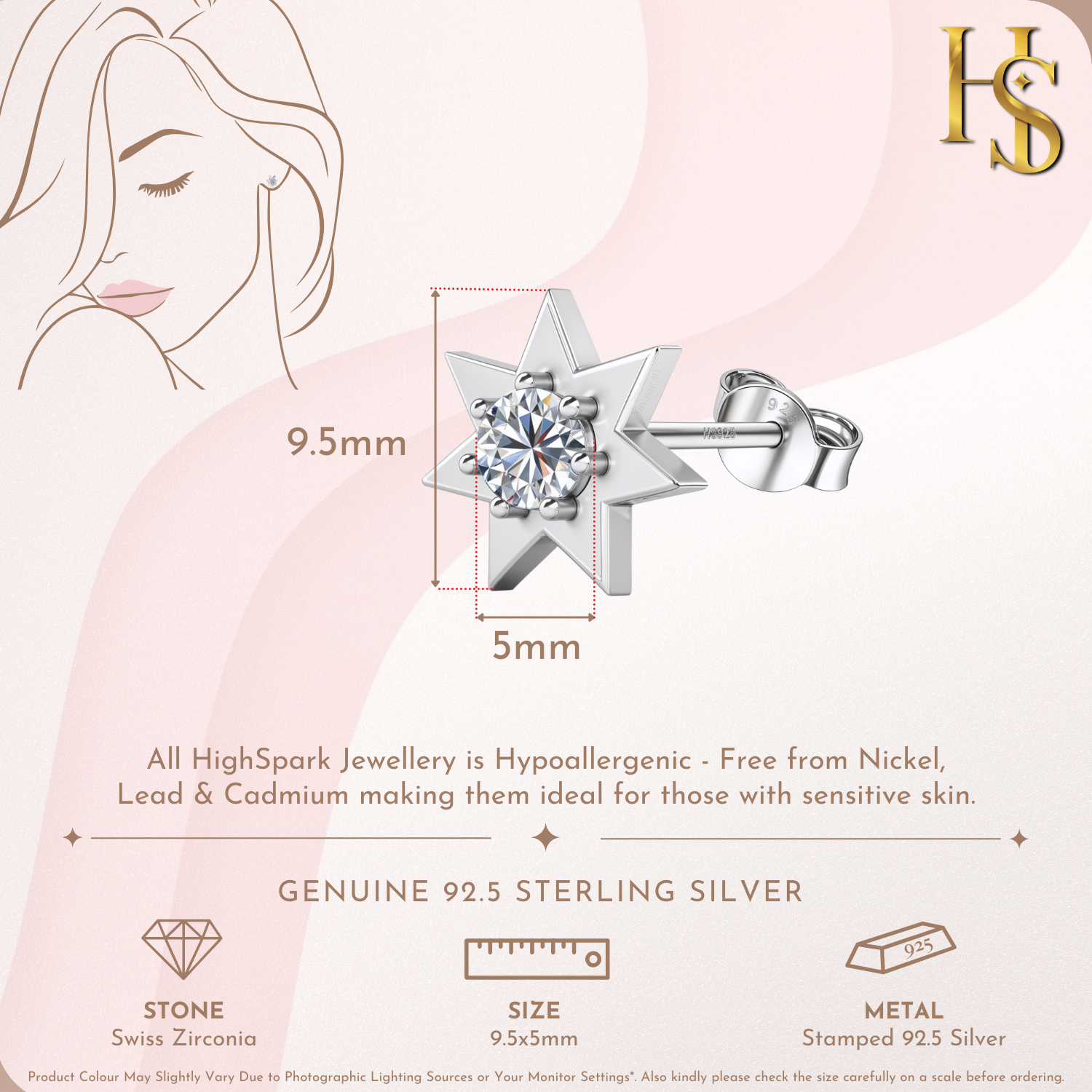 Fairy Star Solitaire Stud Earrings in 925 Sterling Silver For Women