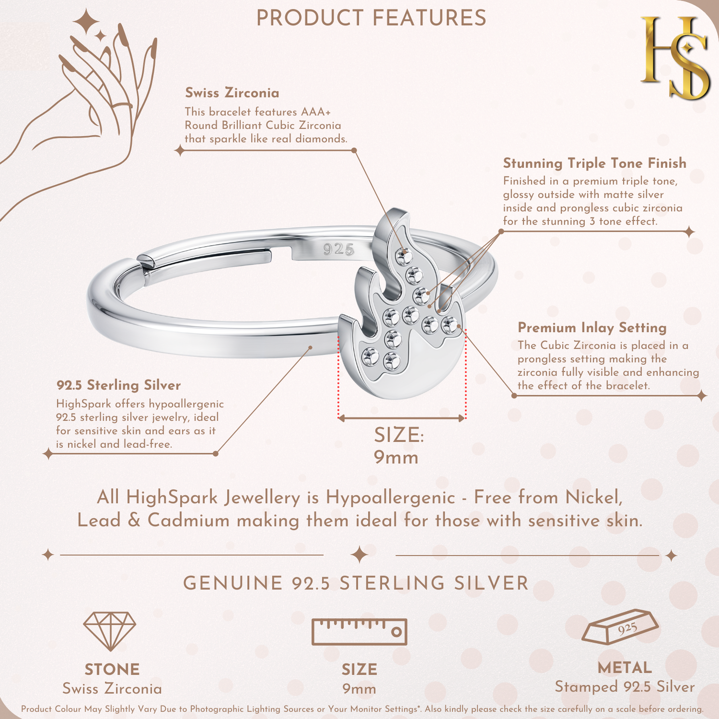 Flame Designer Adjustable Ring in 925 Sterling Silver for Women With Diamond like Brilliance Zirconia
