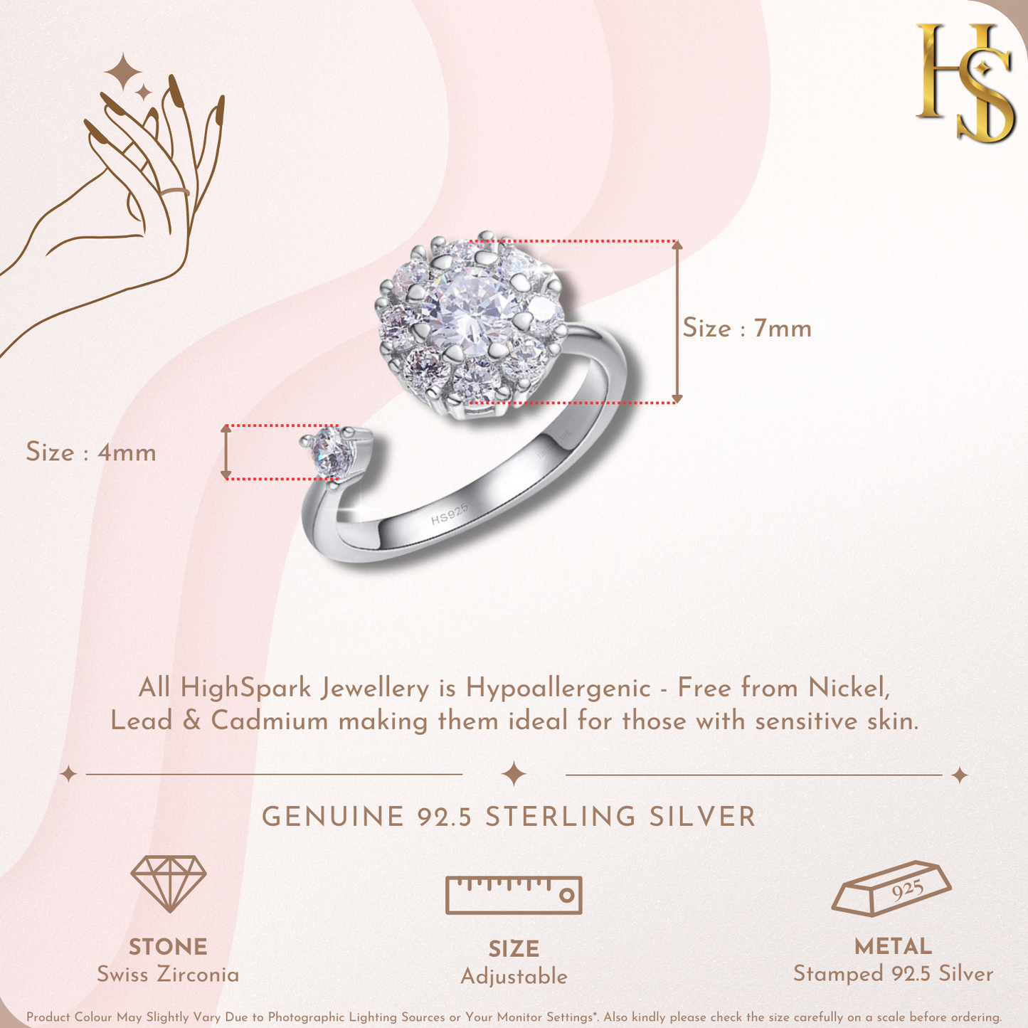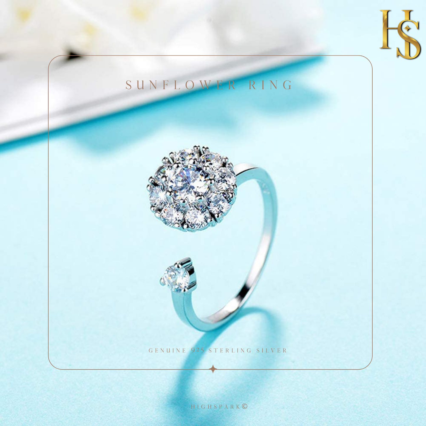 Solitaire Ring Sun Flower Adjustable embellished with Sparkling Zirconia in 92.5 Silver