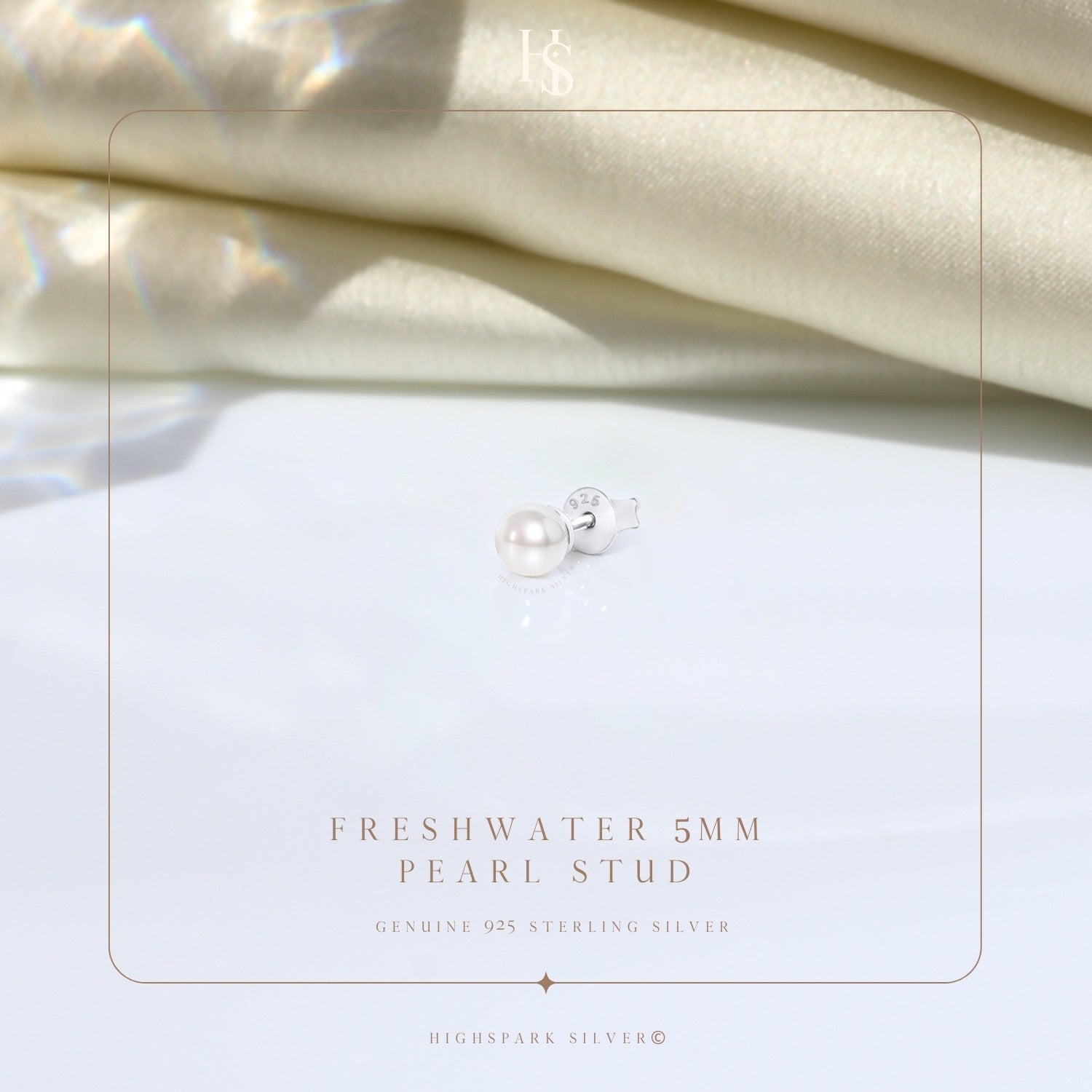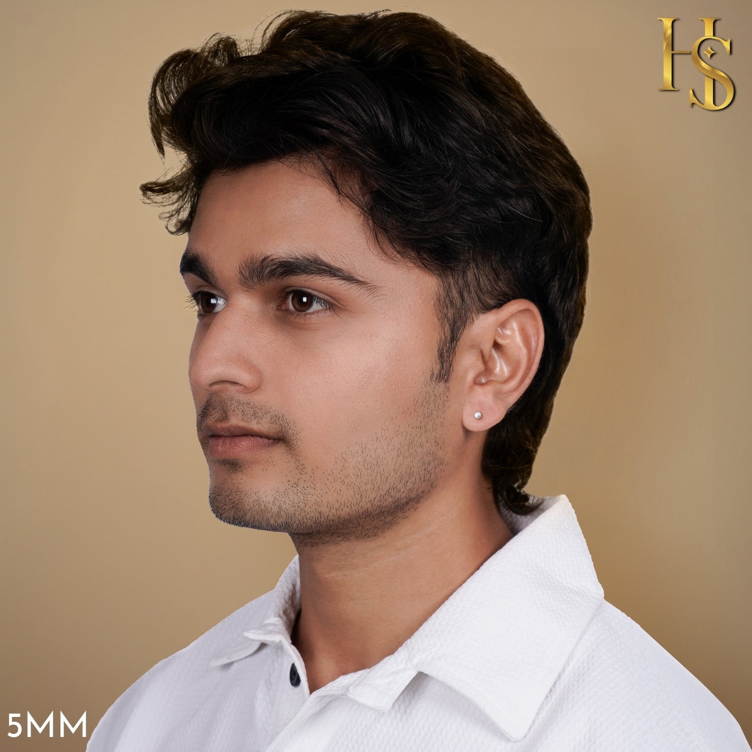 Freshwater 5MM Pearl Stud Earring in 925 Sterling Silver For Mens