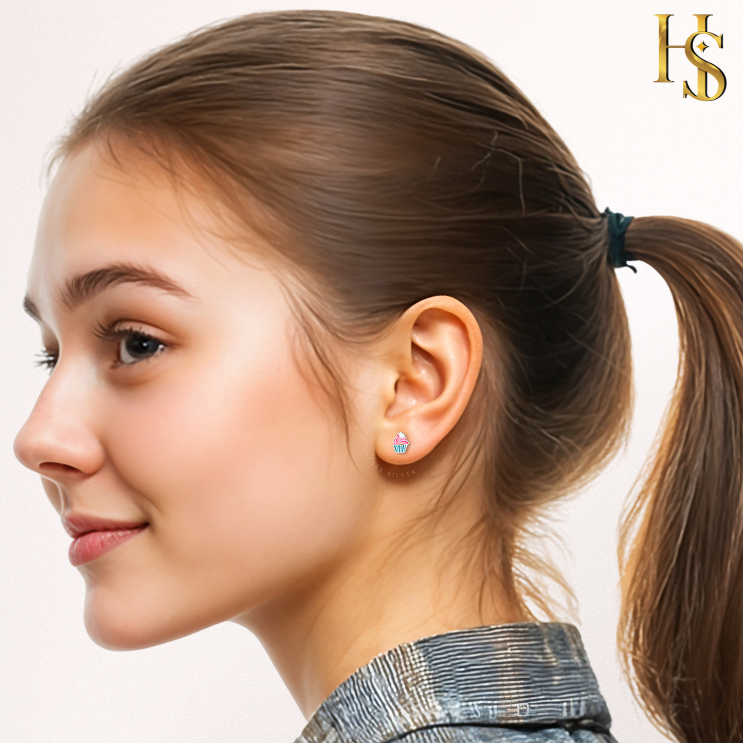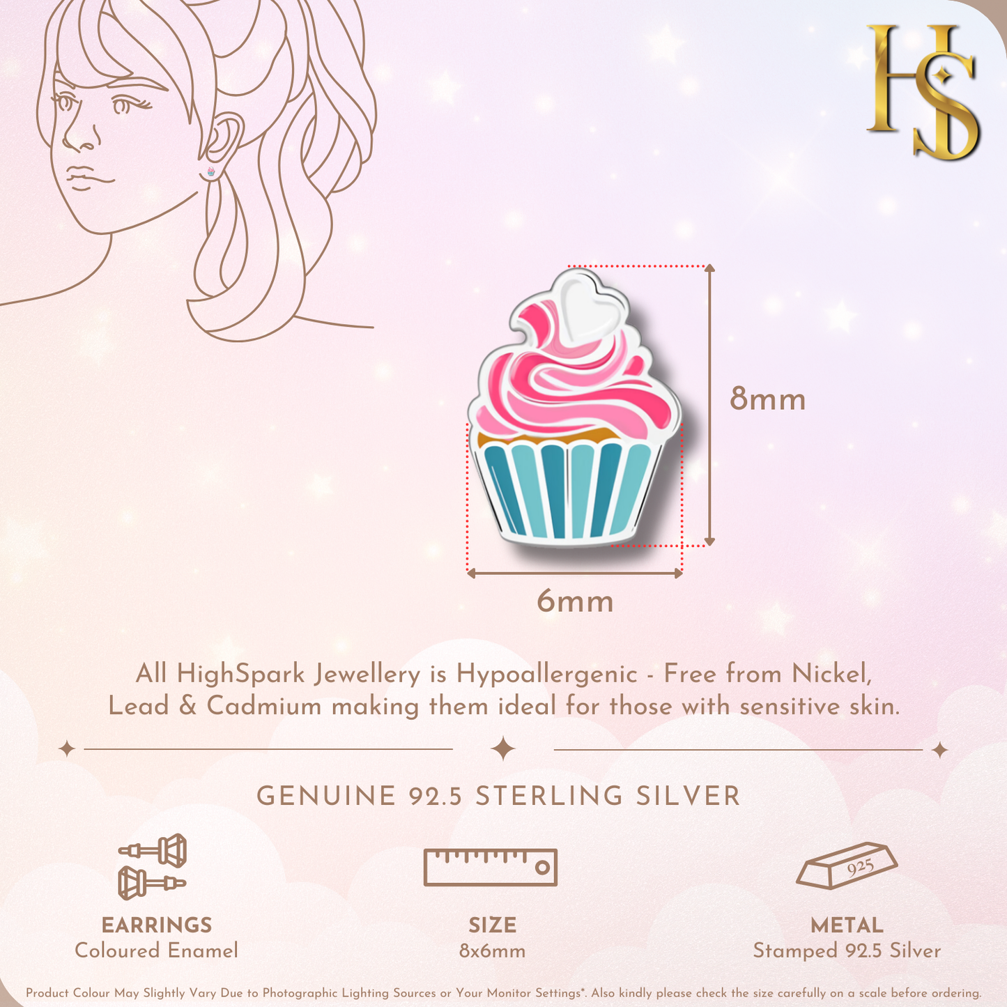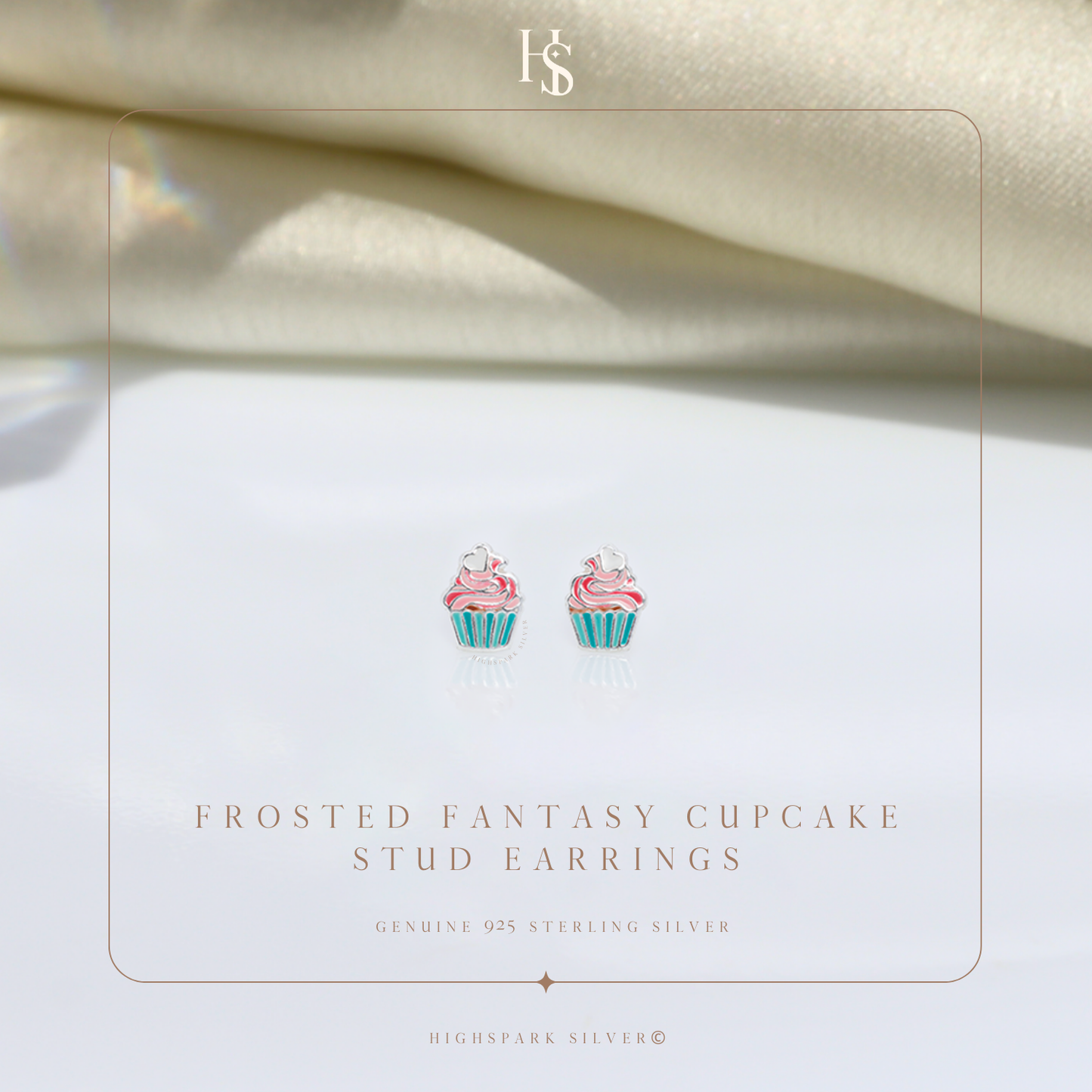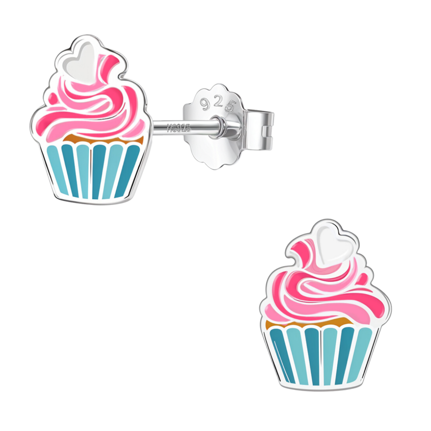 Frosted Fantasy Cupcake Cute Enamel Stud Earrings in 925 Sterling Silver