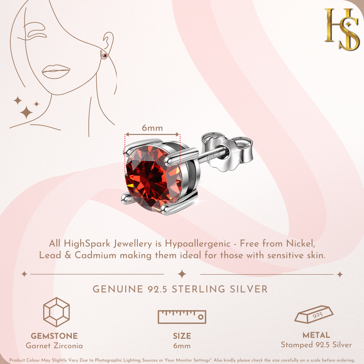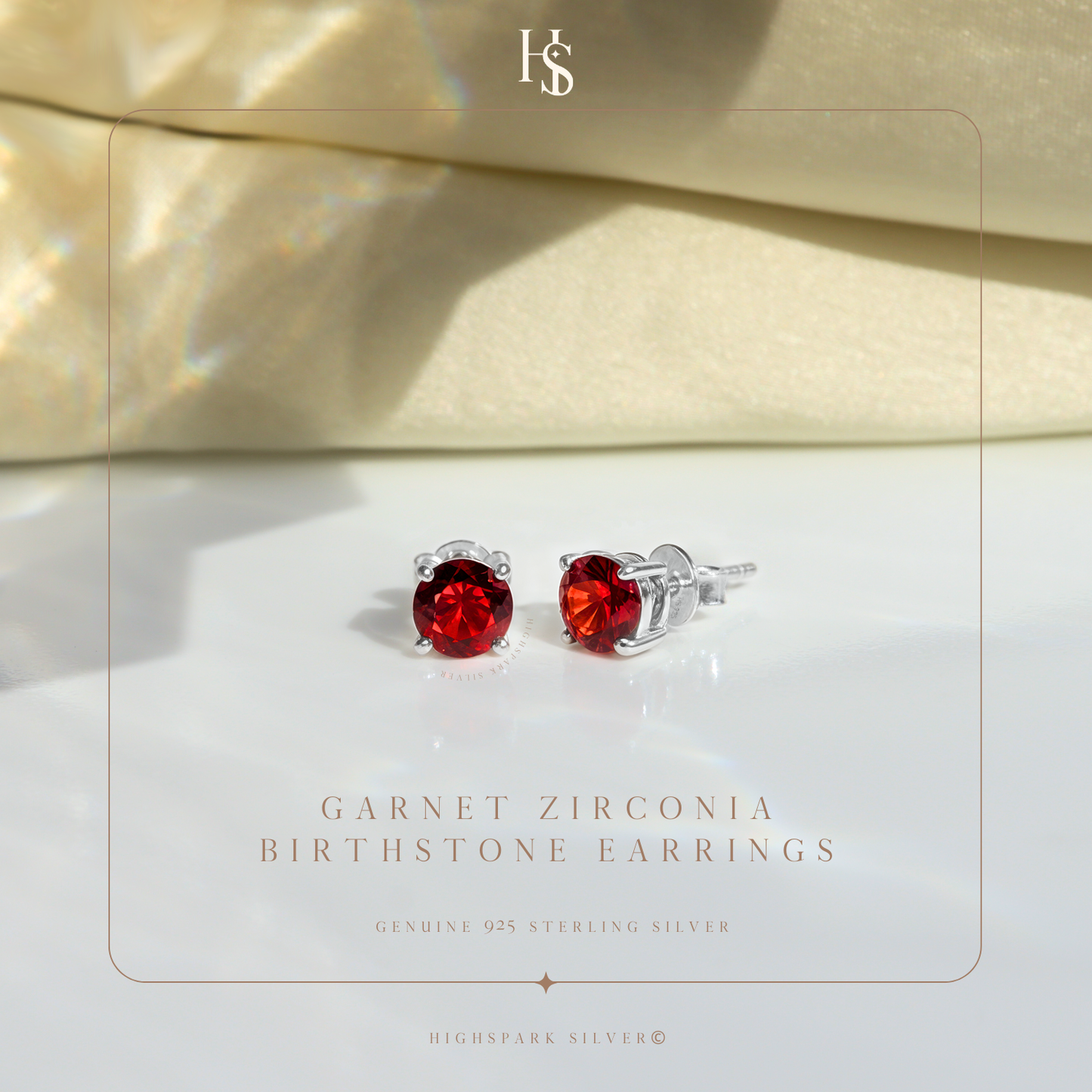 Women's Solitaire Birthstone Earrings - 925 Silver - January Garnet Sparkling Zirconia