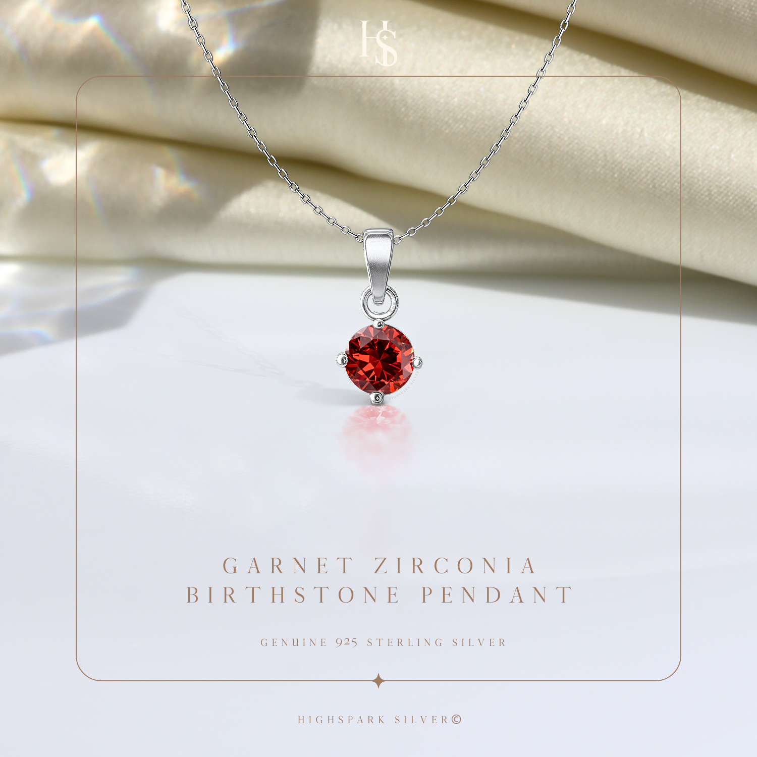 Garnet Zirconia Birthstone Pendant With Chain in 925 Sterling Silver For Women