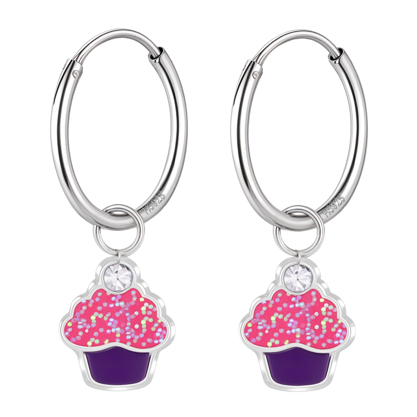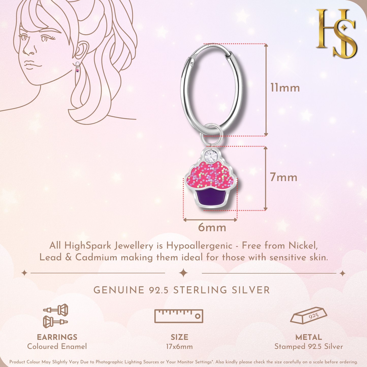 Glittery Cupcake Sprinkle Cute Enamel Hoops in 925 Sterling Silver