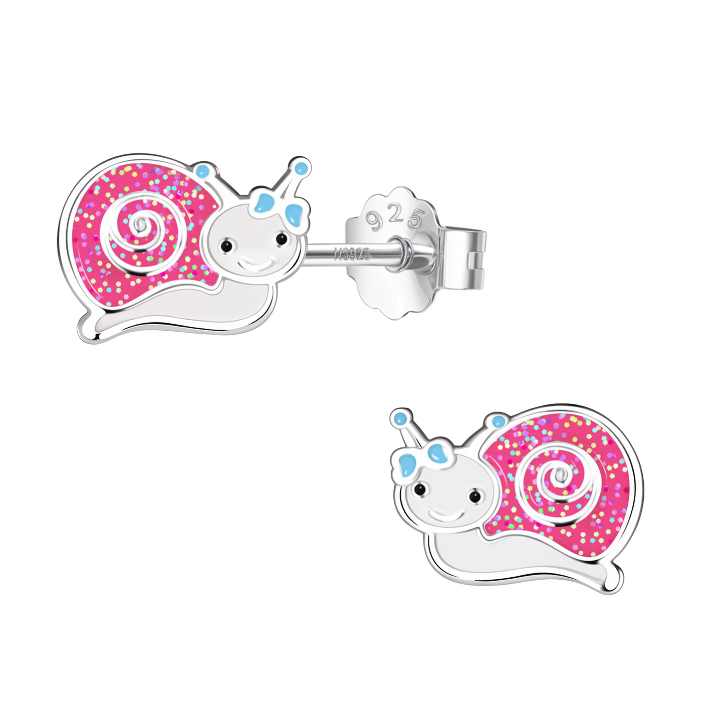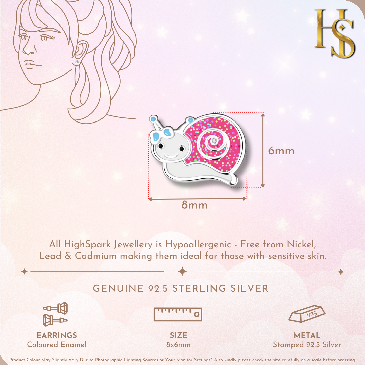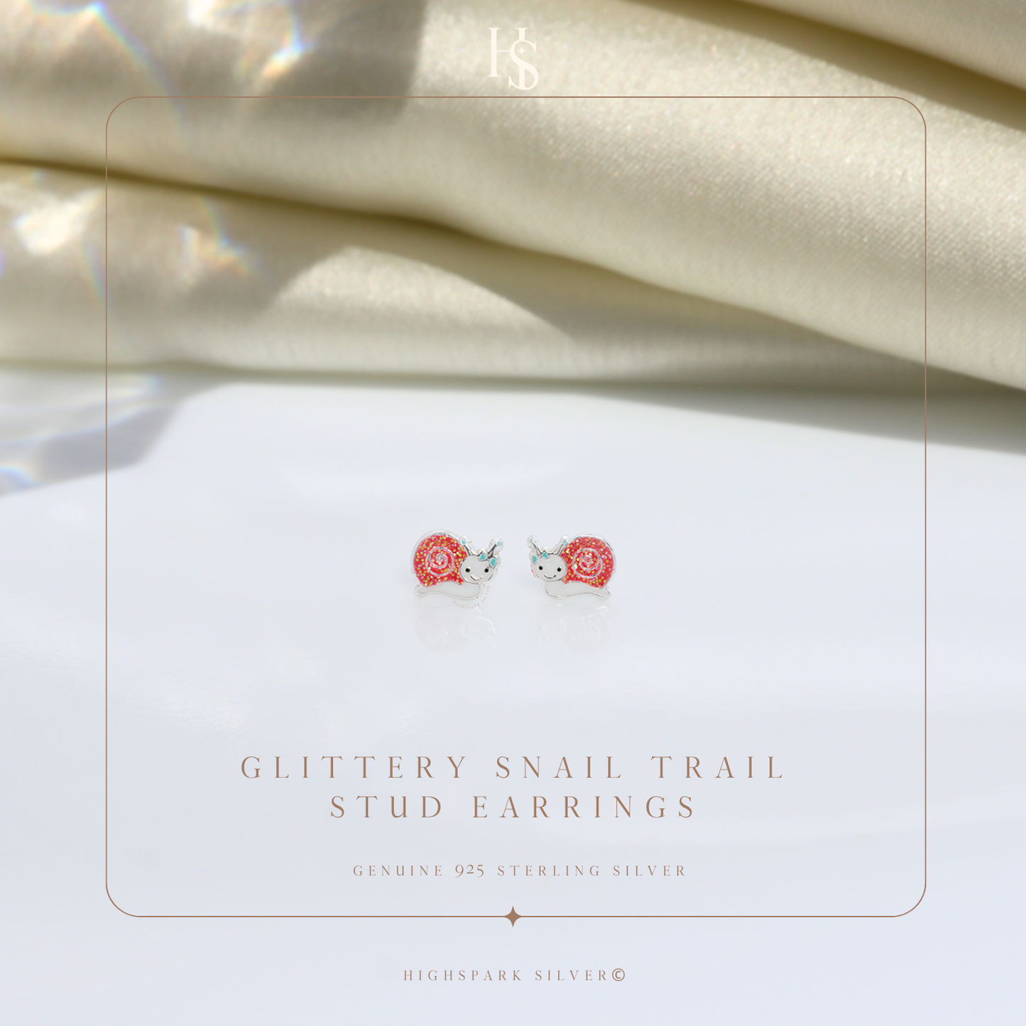 Glittery Snail Trail Cute Enamel Stud Earrings in 925 Sterling Silver