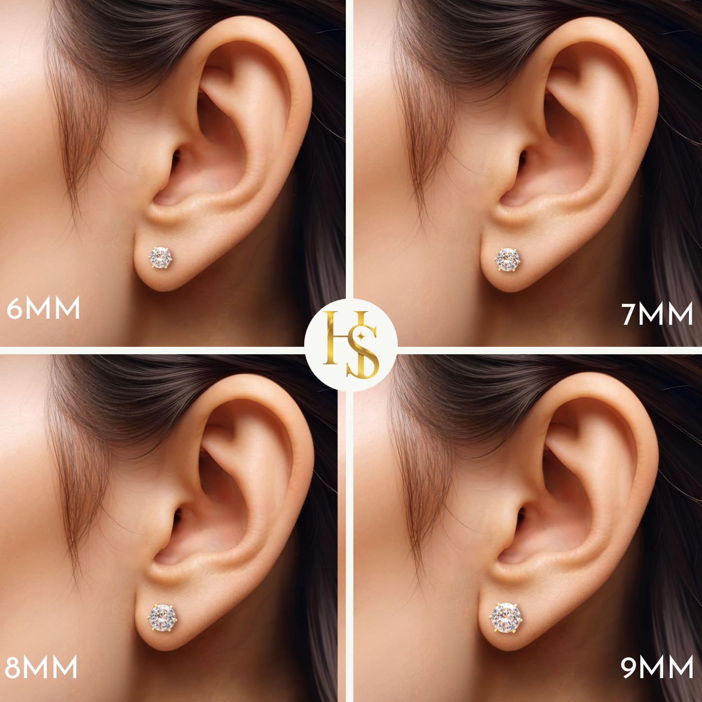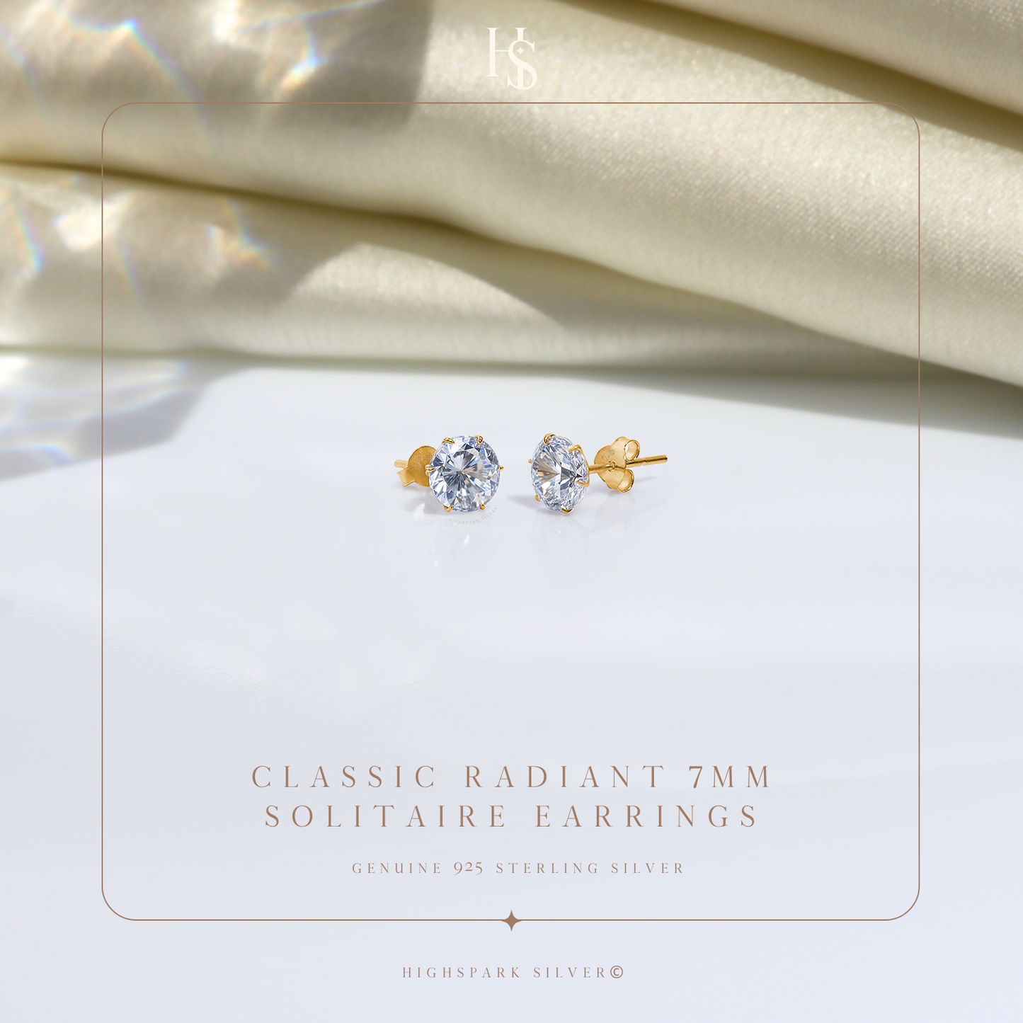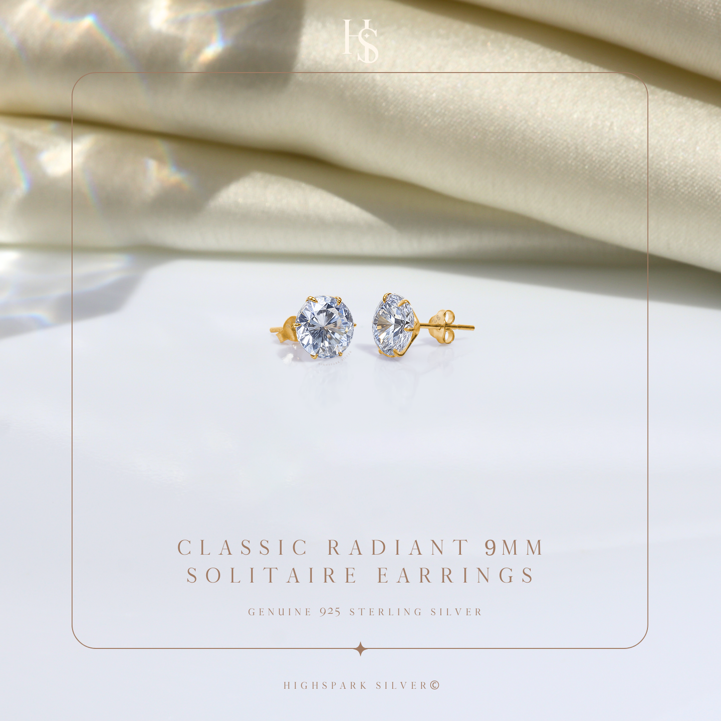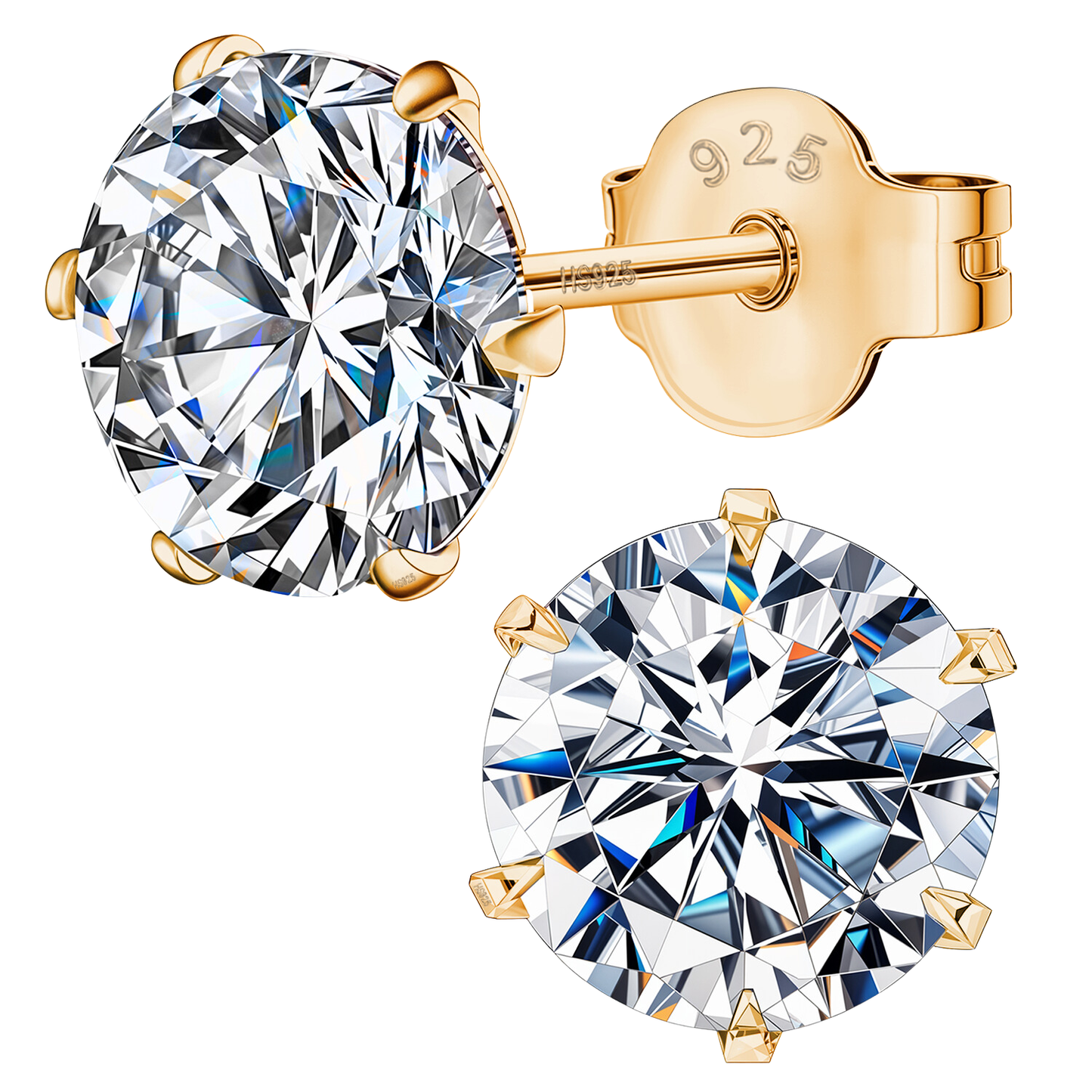Gold Simple Solitaire Stud Earrings - 92.5 Silver - Round Brilliant Zirconia Tops for everyday wear in 18K Gold Finish